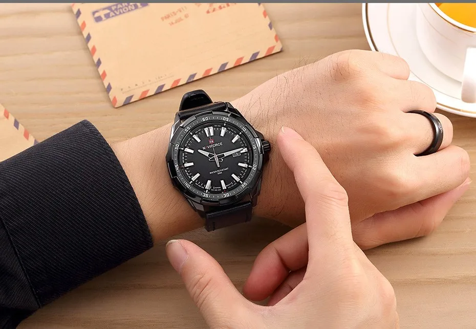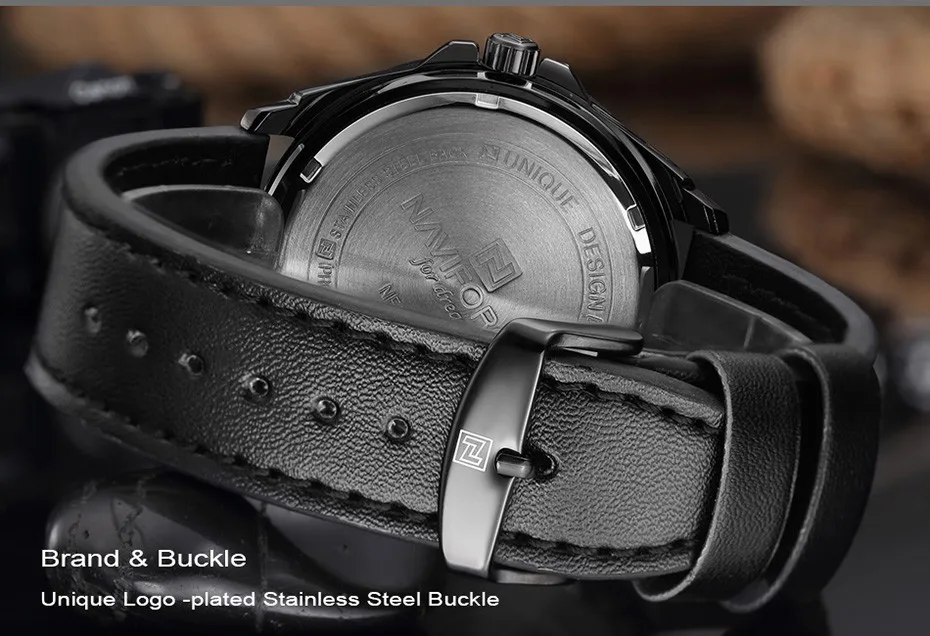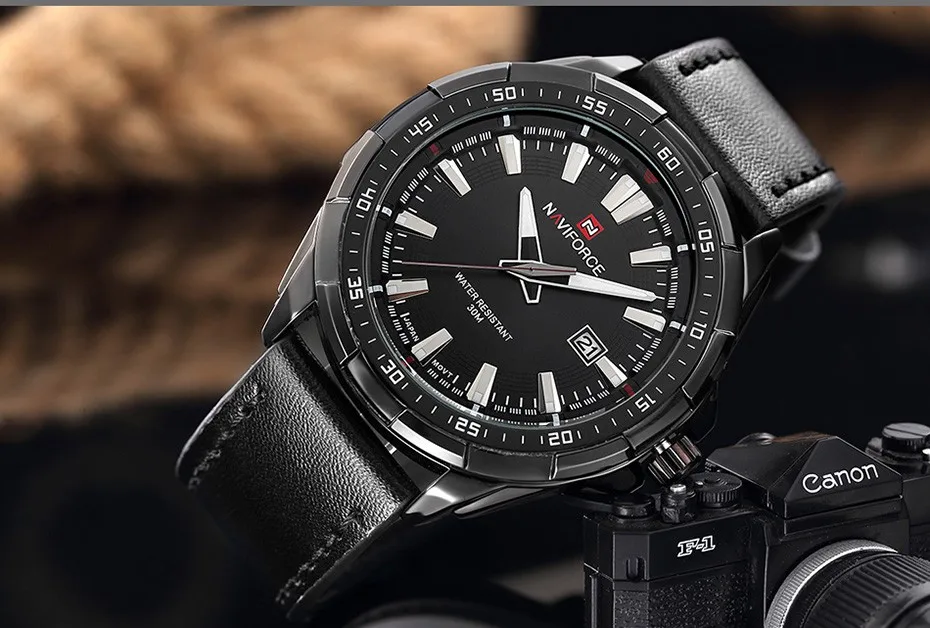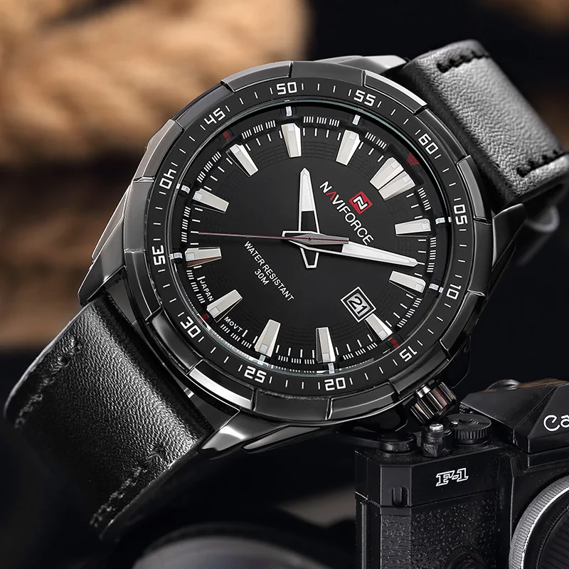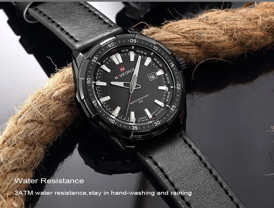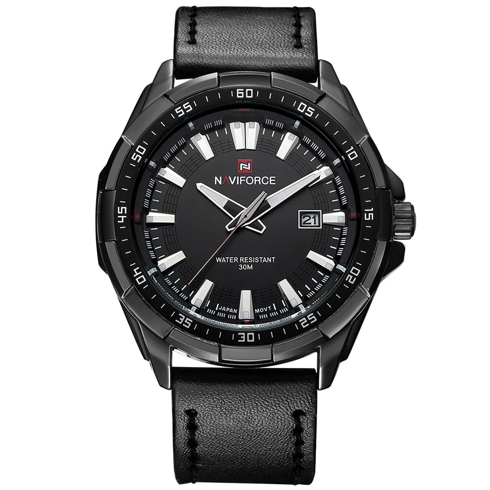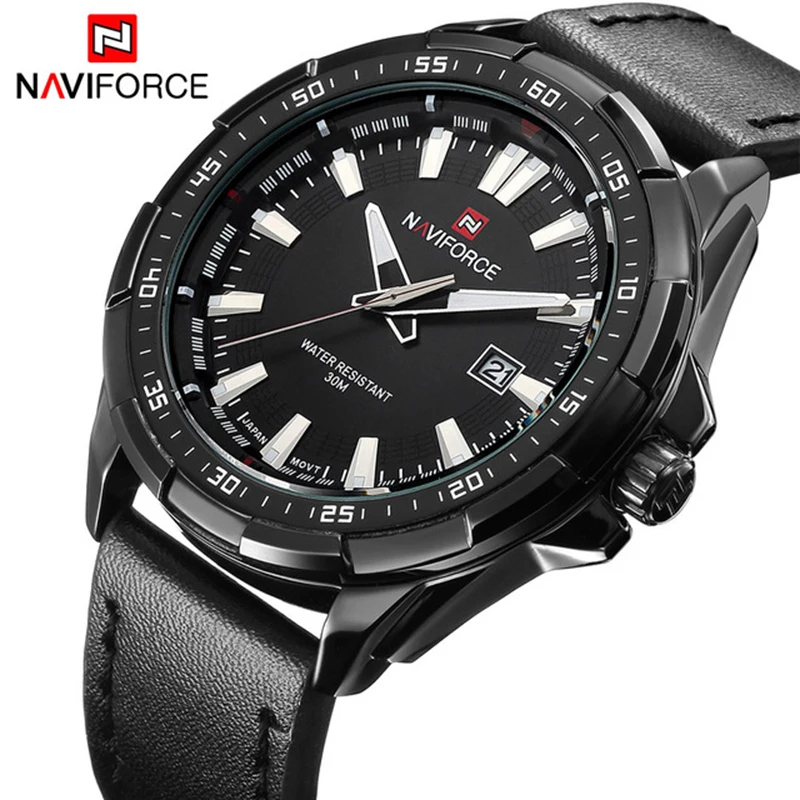 Часы NAVIFORCE Мужские кварцевые, модные повседневные спортивные армейские в стиле милитари, с кожаным ремешком, с датой