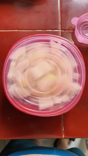 Если крышка влажная она сама сползает с пиалы или что вы там закрыли на тёплое тоже не наденешь. В общем пищевая плёнка лучше. Доставка в Россию супер быстрая спасибо Али.