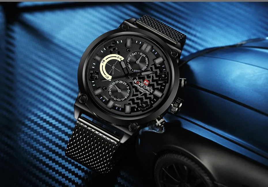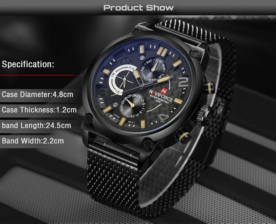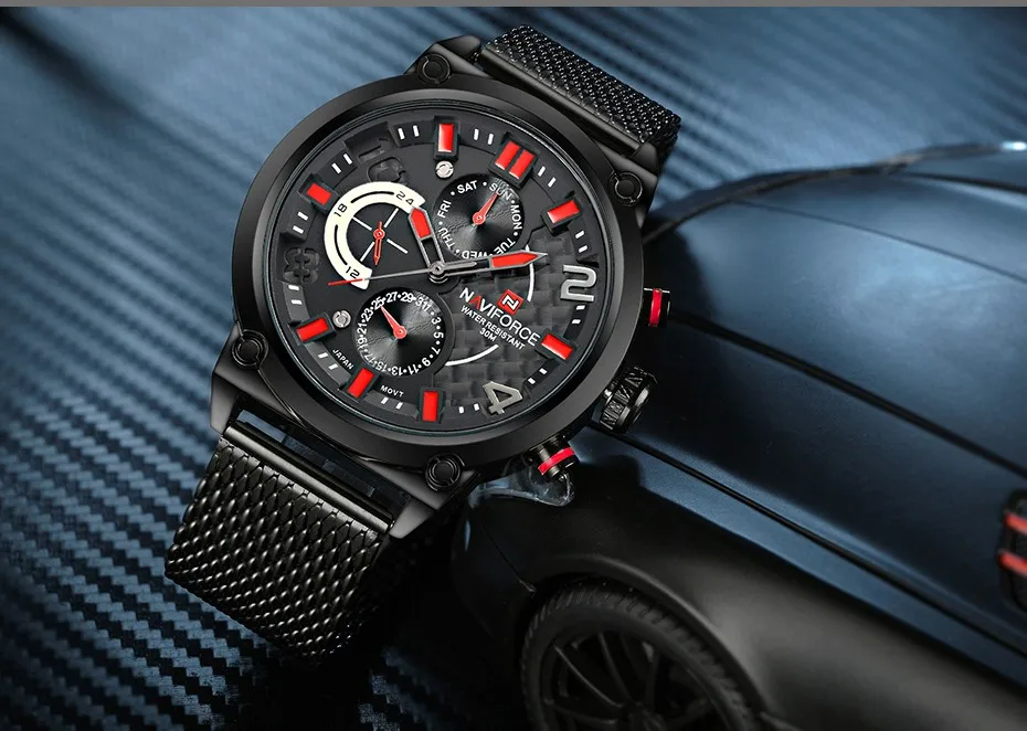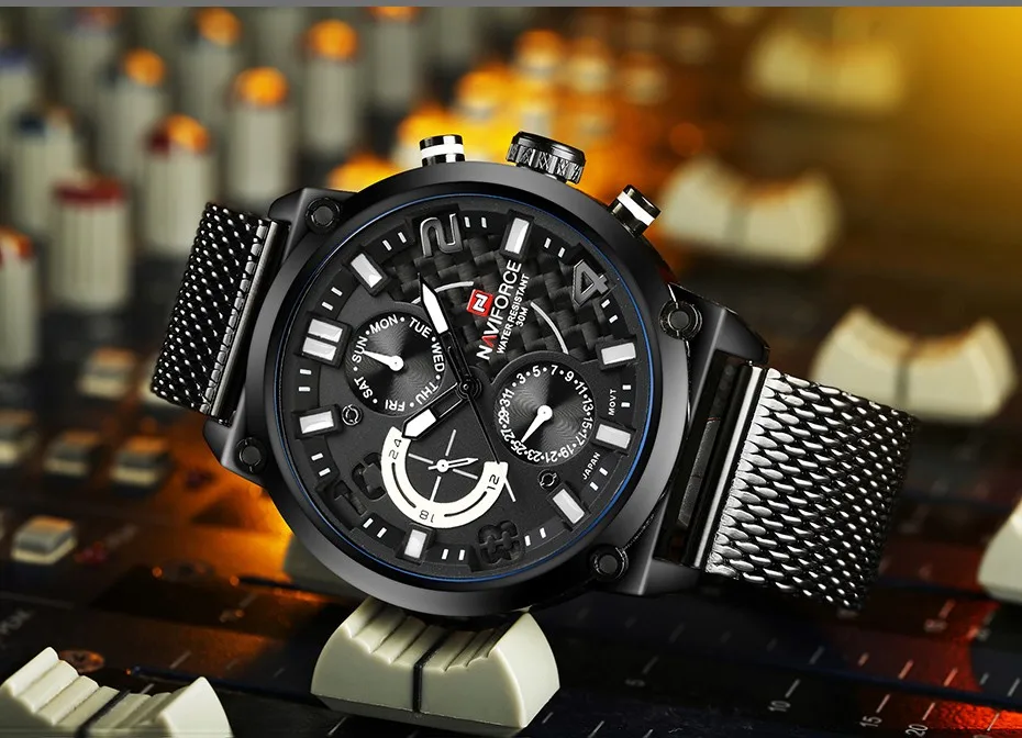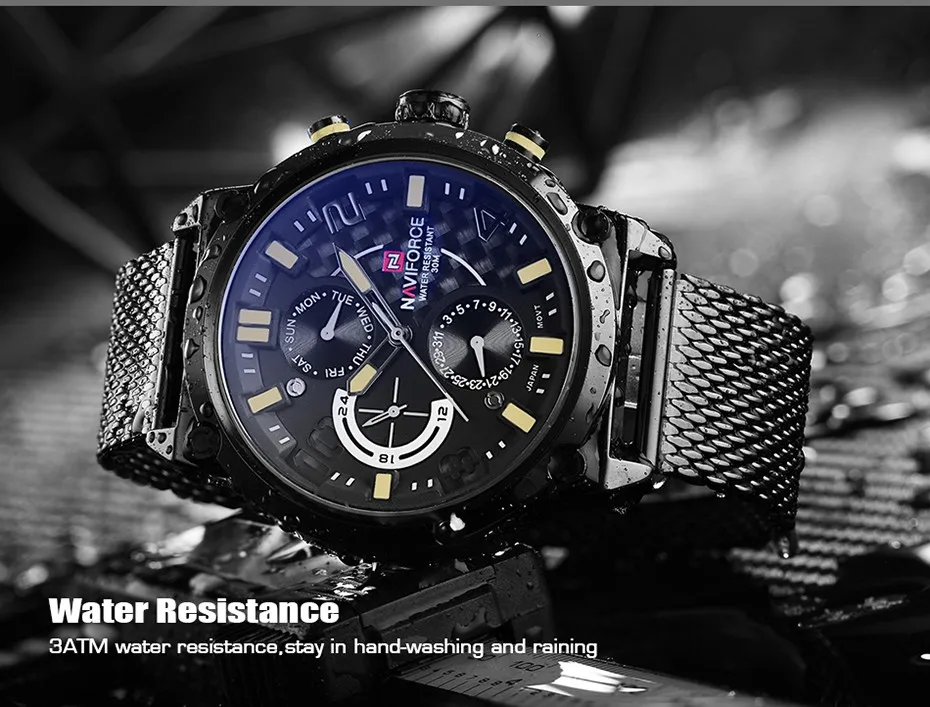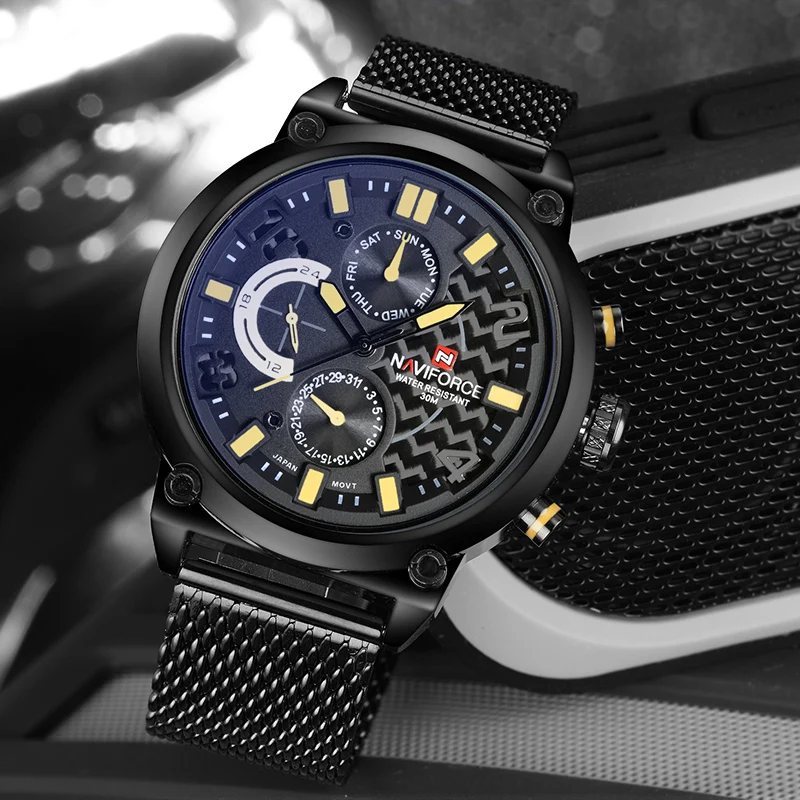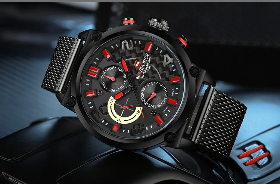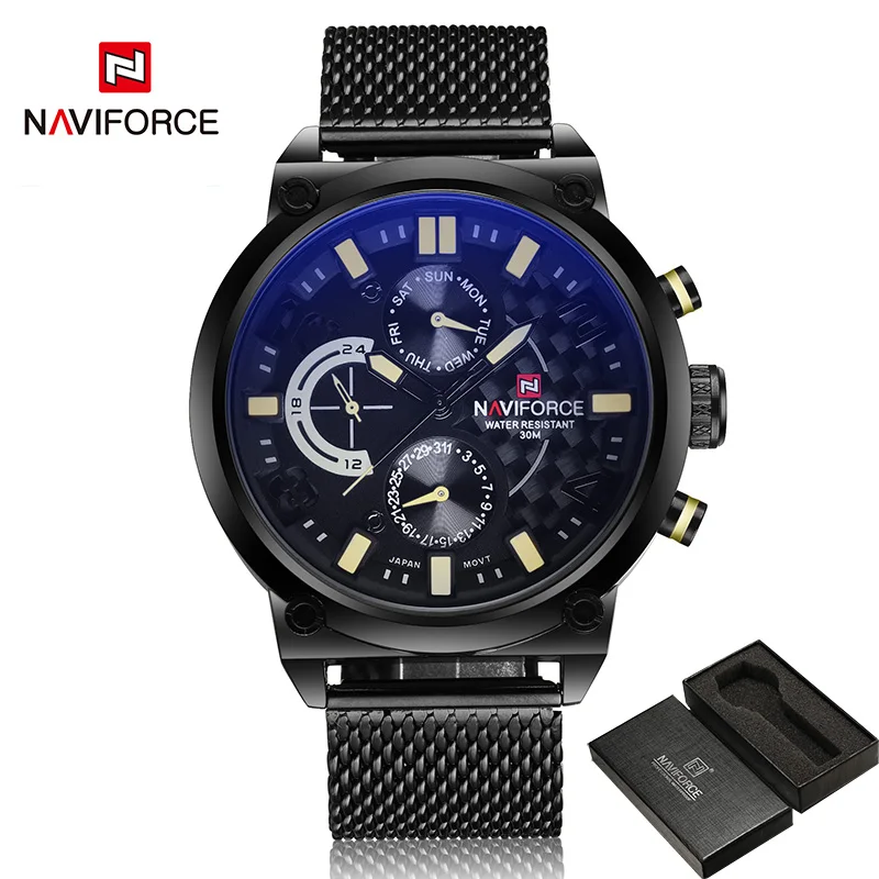 Часы NAVIFORCE Мужские кварцевые, из нержавеющей стали, с сетчатым ...