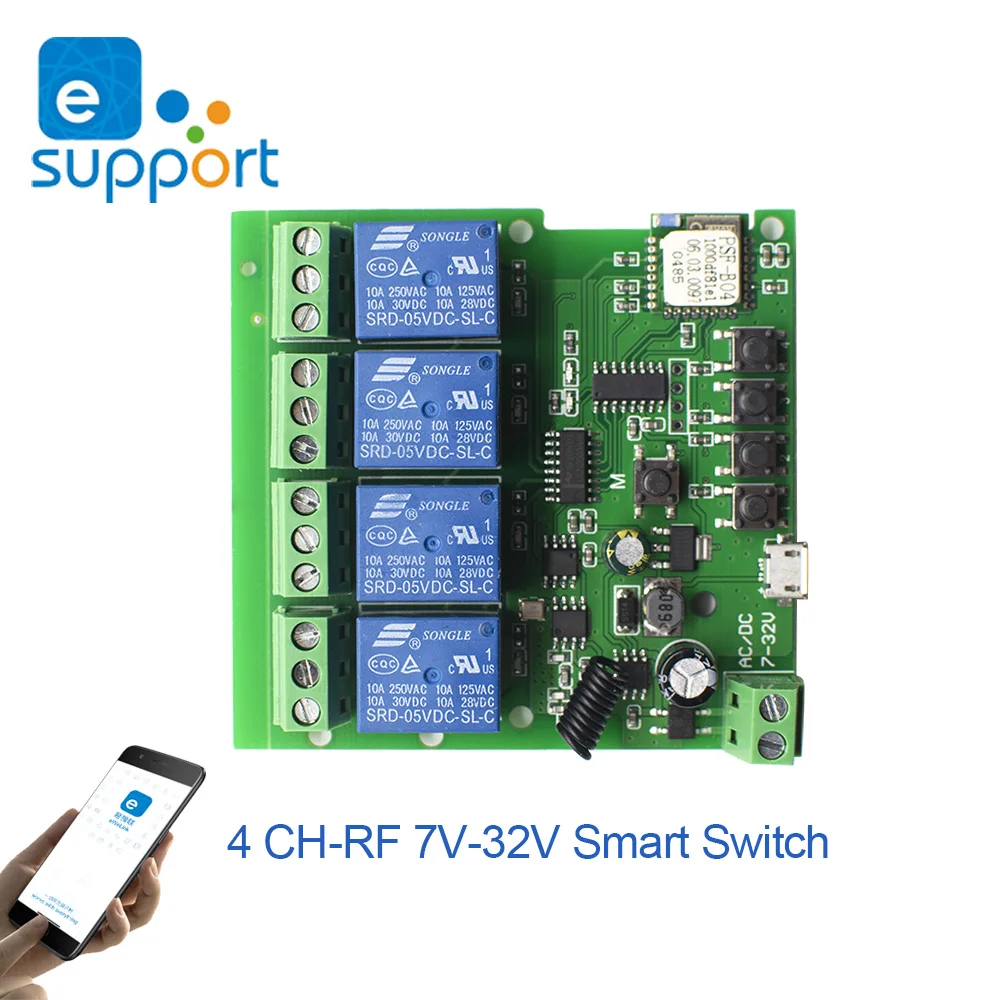 4 канальный DC7V-32V (поддержка 433 МГц) Wif + RF беспроводной модуль переключения