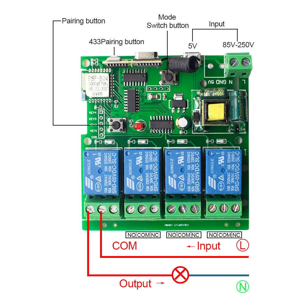 Тип 1: 4 ch DC 7V-32V (без радиочастотной функции) Wifi беспроводной переключатель модуль Тип 2: 4 канальный DC7V-32V (поддержка 433 МГц) Wif + RF беспроводной модуль переключения Тип 3: 4 канальный AC85V-250V (поддержка 433 МГц) Wif + RF беспроводной модуль переключения