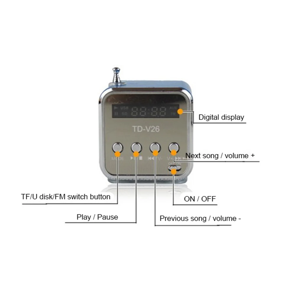 TD-V26 мини-колонка, светодиодная музыкальная Колонка для MP3-плеера, колонка FM, портативное радио USB Micro SD TF для ПК, ноутбука