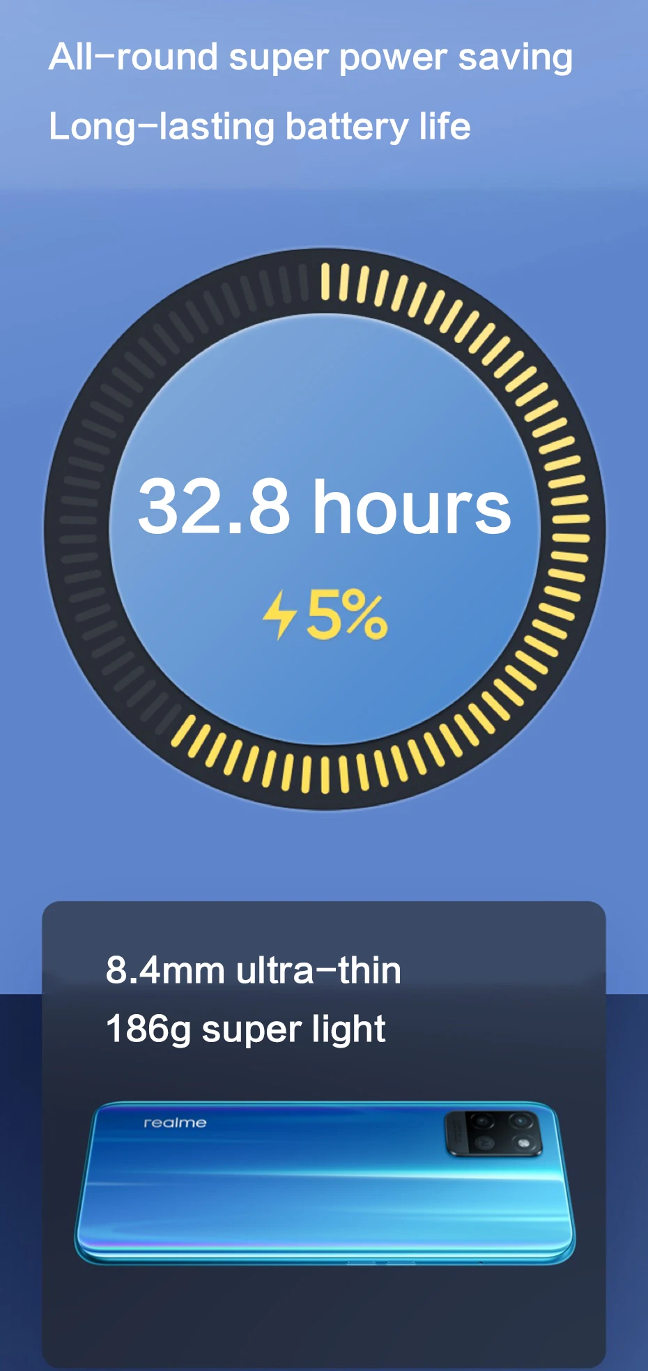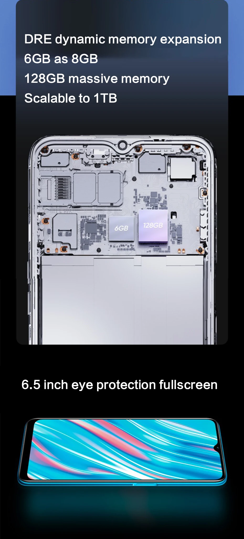 5000mAh Большой Батарея-продолжительное время работы в режиме ожидания: 641 часов; 8,4mm тонкий и светильник тела; 128 большой объем памяти; Двойной 5G Гуаль режим7nm процесс 5G чип; 18 Вт (макс.) • Быстрая зарядка; 6,5 дюймов защита глаз в полноэкранном режиме