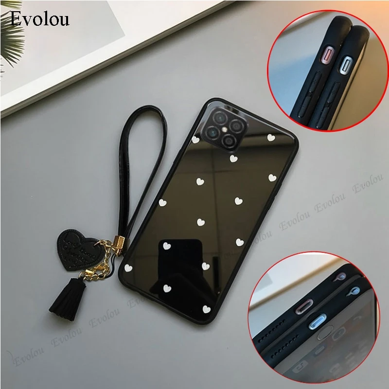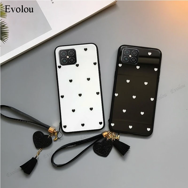 Чехол для телефона из закаленного стекла с милым сердечком для HUAWEI NOVA 9 Pro 8SE 8i 7i 5i 6SE P40 Lite, Противоударная задняя крышка с кисточкой и шнурком