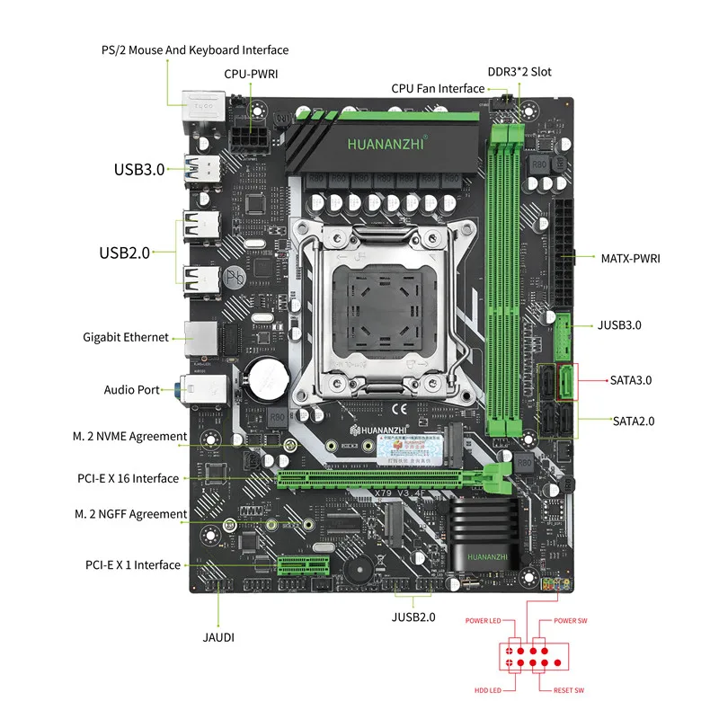 Бренд: HUANANZHIРазмер: 235x185ммКоличество: 1 шт.Тип товара: материнская плата X79-6M V2.0Тип материнской платы: M-ATXОсновной чип: серия X79Слот для видеокарты: 1 * PCI-E 3,0 16X 1 * PCI-E3.0 X1Встроенная Видеокарта: нетИсточник питания: 7 источников питанияСлои печатной платы: 6Ethernet: гигабитТип процессора: LGA2011 (XEON E5 2620/2630/2640/2650/2660/2665/2670/2680/2690 C2 и V2)Слот памяти: 2 * DDR3 (2 канала)Максимальный объем памяти: 32Gx2 DDR3Скорость памяти: 1866/1600/1333Поддерживаемый Тип памяти: без ecc/reg ecc/eccИнтерфейс SATA: SATA3.0x1 SATA2.0x3Интерфейс USB: USB3.0x4 USB2.0x8 (включая расширение)Интерфейс M.2: M.2 NVME + M.2 NGFFАудио порт: ALC662 5,1 КАНАЛ