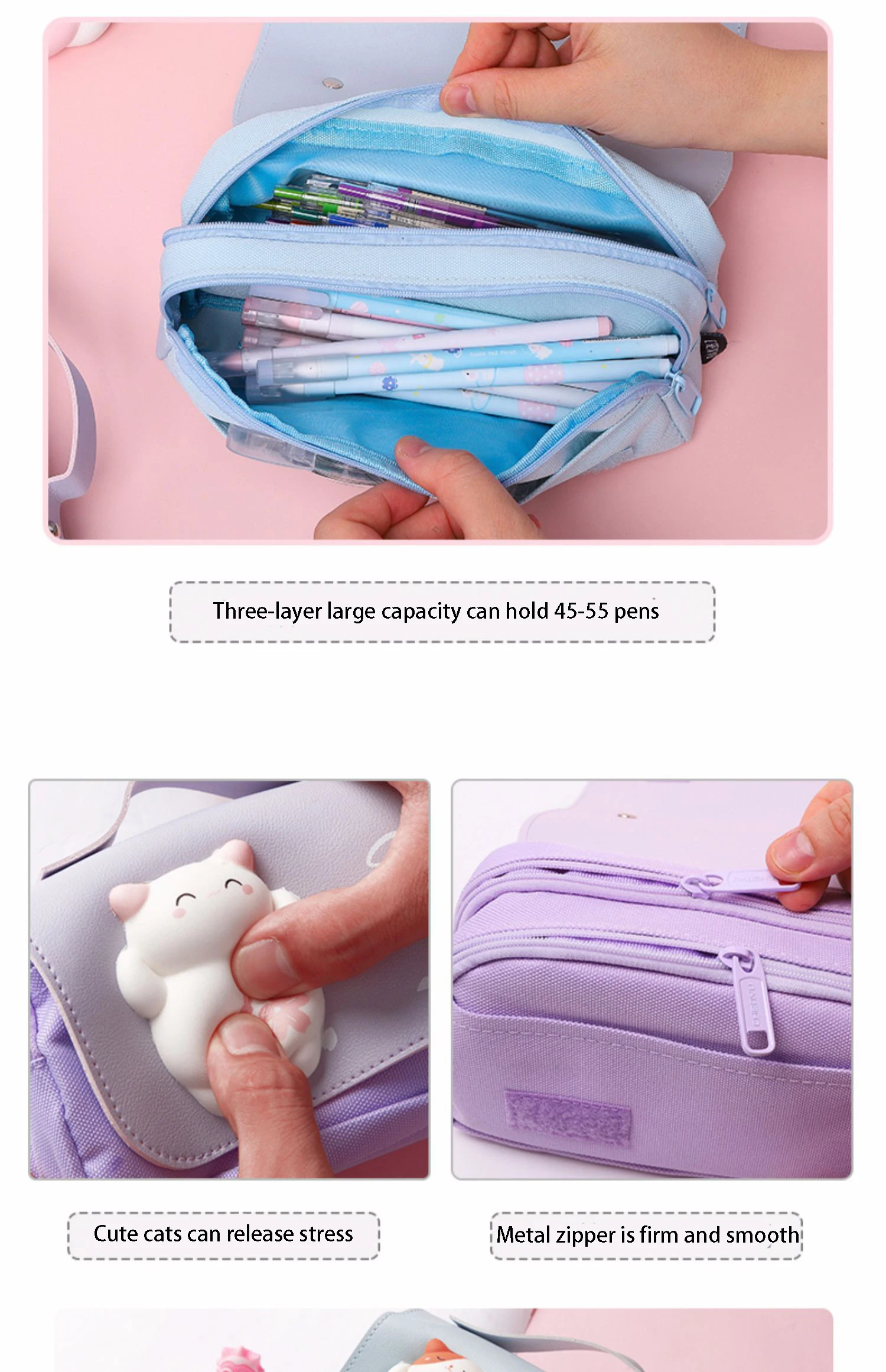 Сумка для карандашей Stress Reli, чехол для ручки, 2 молнии, корейские Канцтовары, школьные принадлежности, милый Органайзер, прекрасный подарок
