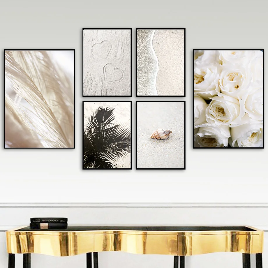 Настенная картина с изображением пляжа, сердца, раковины, цветов, Листьев, спиндринга, постеры и принты на холсте в скандинавском стиле, настенные картины для декора гостиной icon star icon star icon star icon star icon star