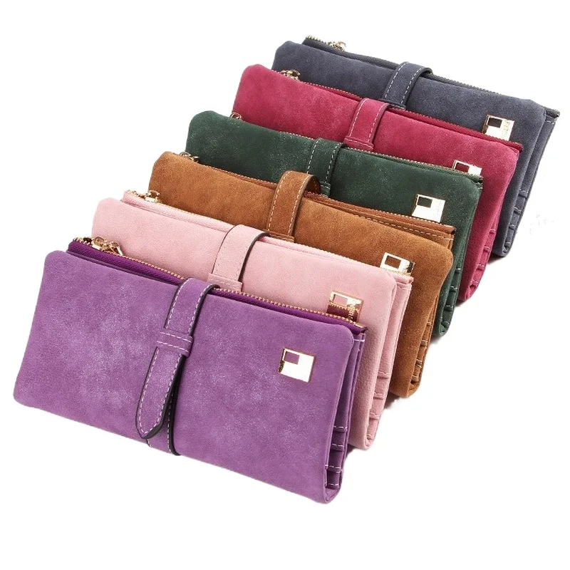 Длинный кошелек от известного бренда, женские кошельки двойного сложения из нубука и кожи на шнурке, замшевый кошелек на молнии, женский кошелек, женский клатч