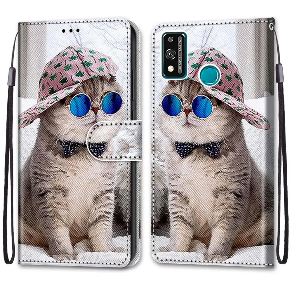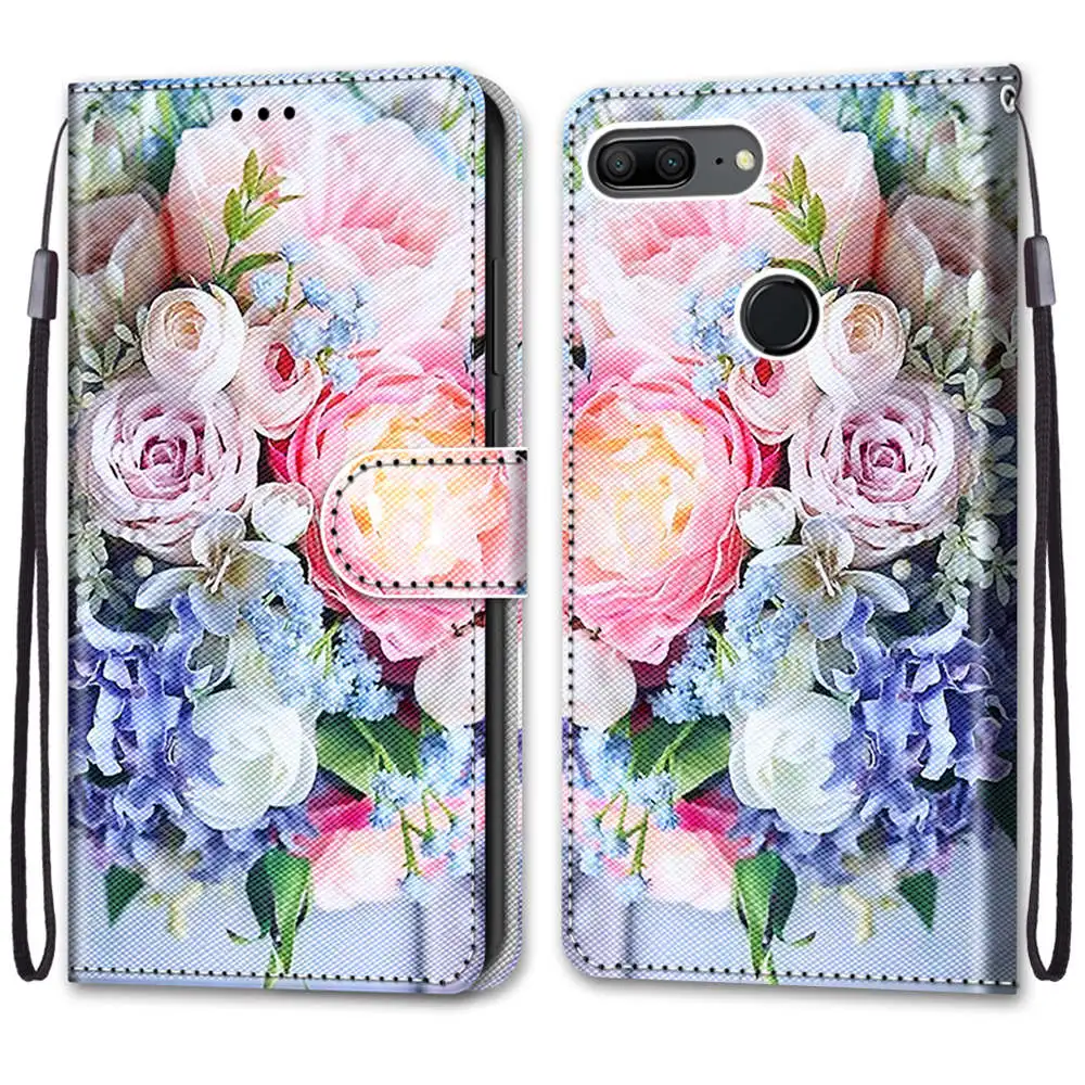 StyleAnimal Cat Flower Pattern Wallet Flip Cover For Huawei Honor 9C 9A