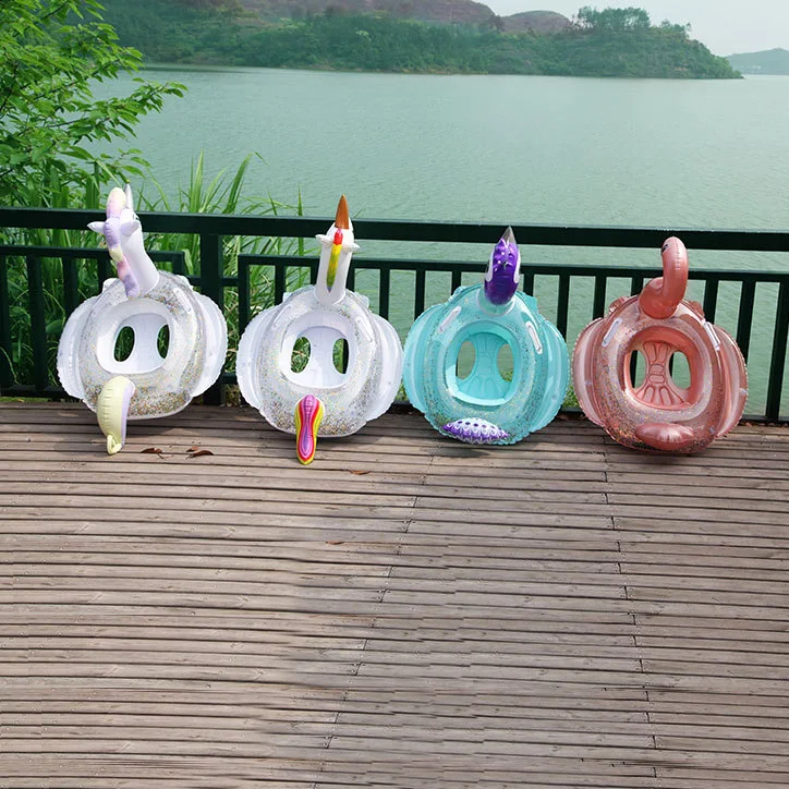 Надувной круг в форме фламинго для младенцев, плавательный круг в форме единорога с солнцезащитным козырьком, плавающее сиденье, летняя игрушка для пляжа, вечеринки