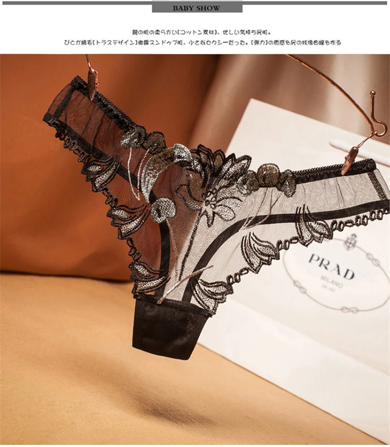 Трусы-стринги женские кружевные, бесшовные, прозрачные, цвет в ассортименте