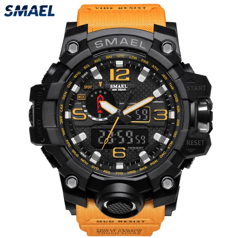 SMAEL 2021, модные спортивные часы, мужские часы с будильником, оранжевые, водонепроницаемые, с отображением недели, мужские часы, цифровые часы, мужские часы