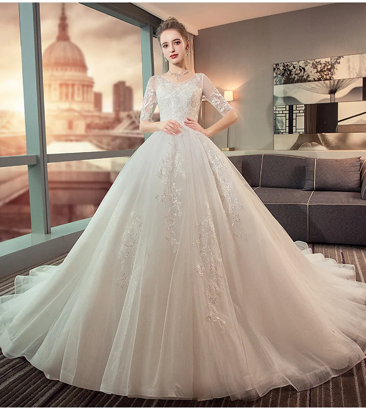 Свадебное платье для росписи, свадебное платье 2021 рукава фонарики