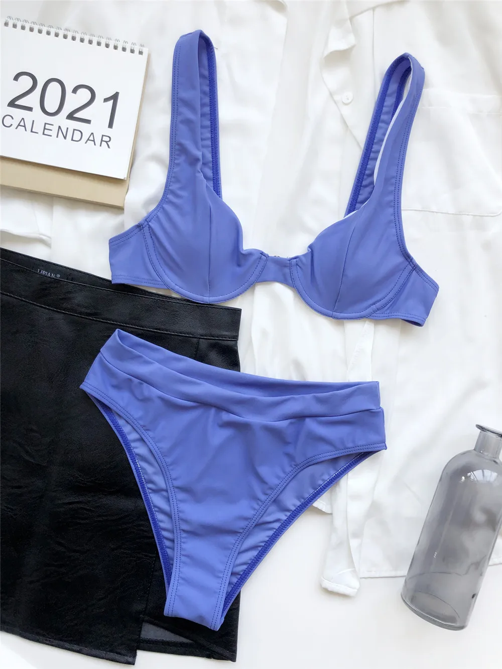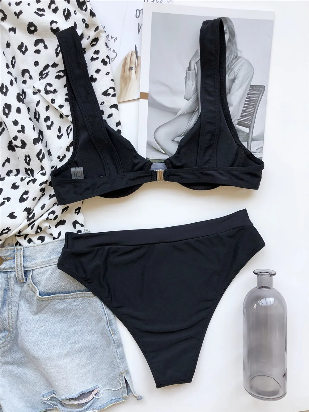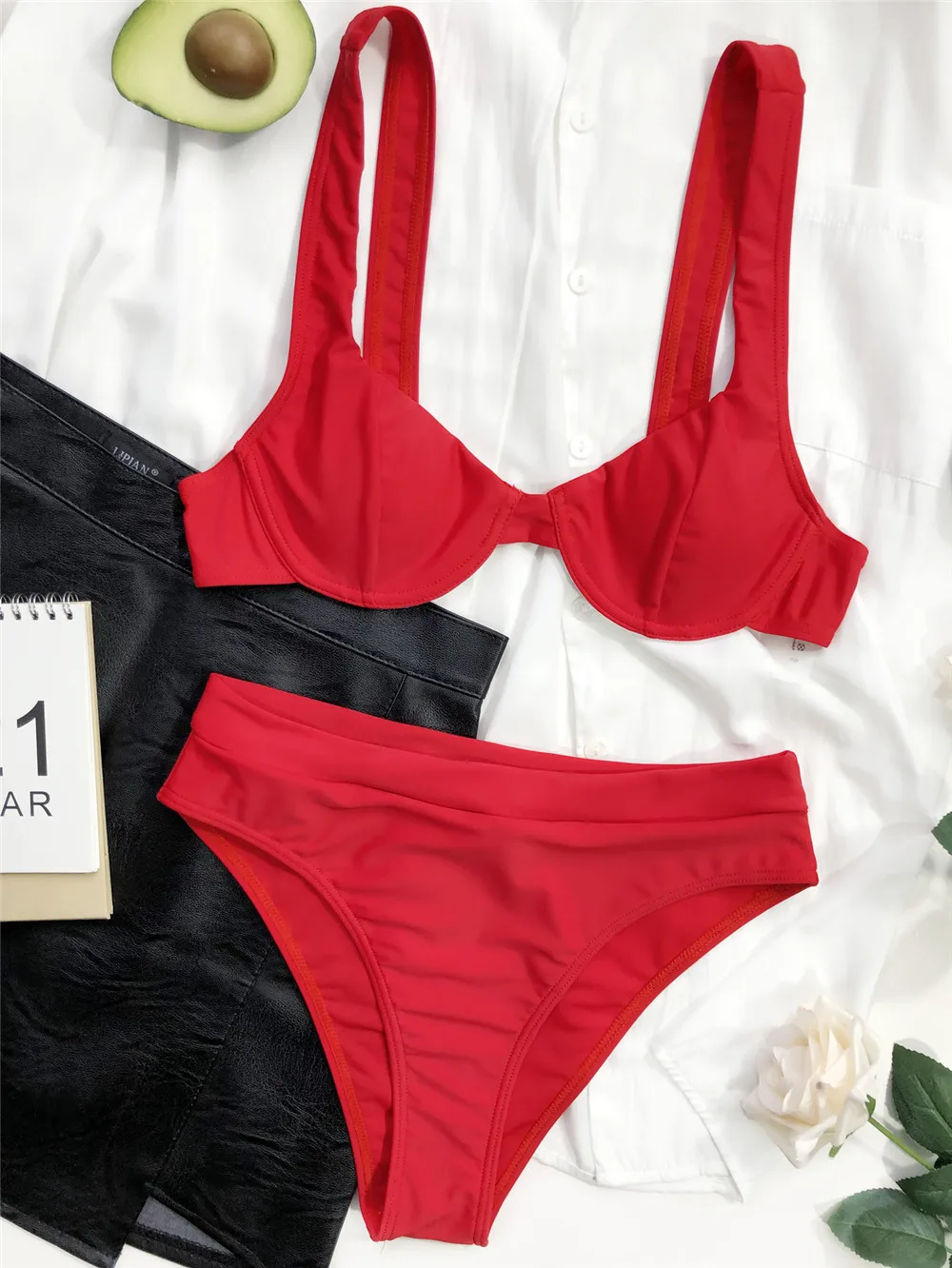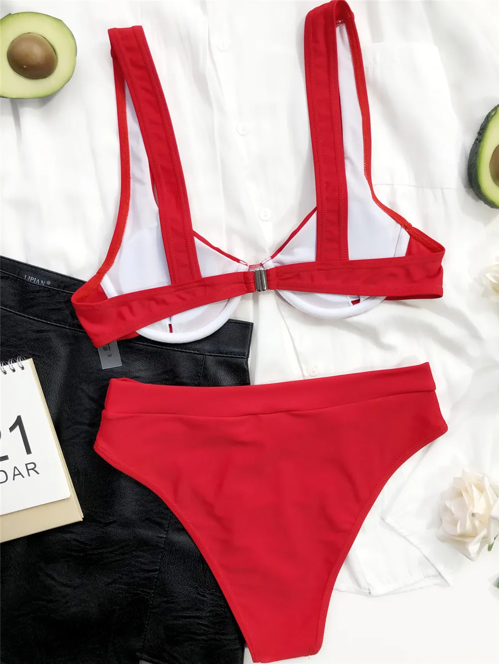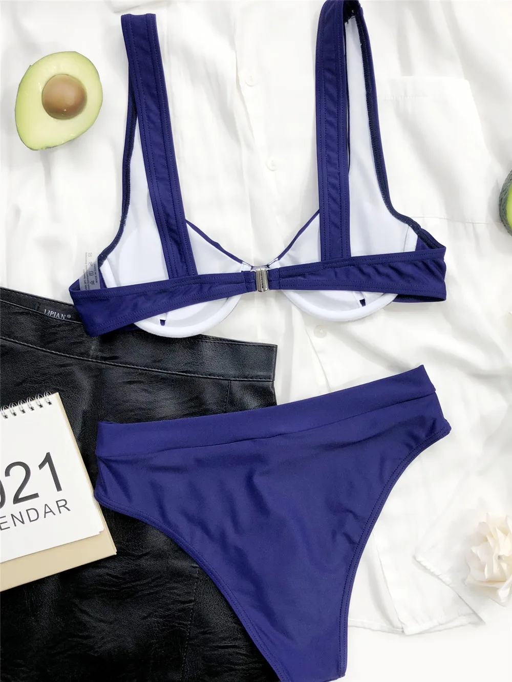 Новинка 2022, комплект бикини SummerPeach с высокой талией, Женский однотонный купальник пуш-ап, женский купальник с открытой спиной, Бразильское бикини, купальный костюм