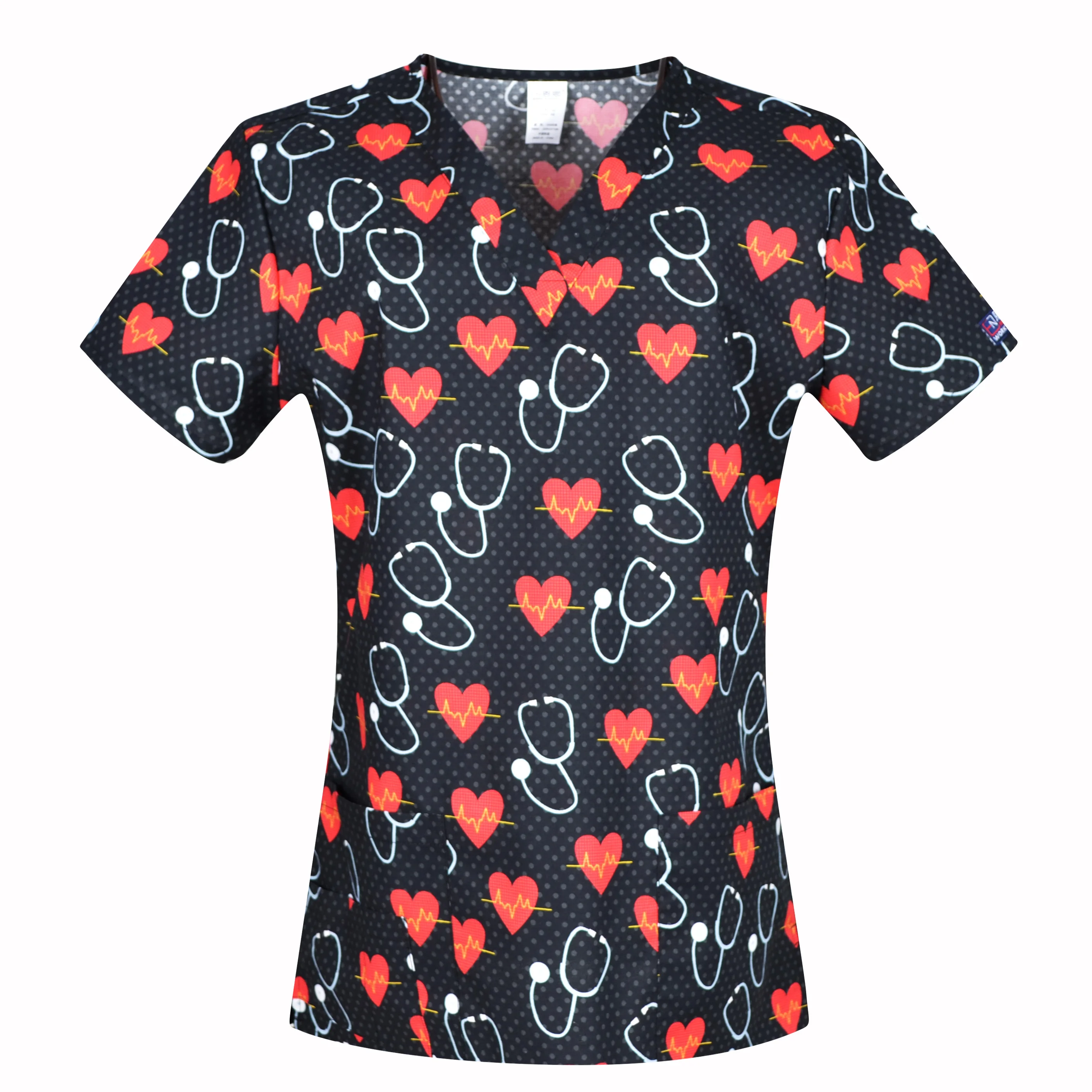 Женский скраб-топ с v-образным вырезом 100% хлопок Принт Медсестры ...