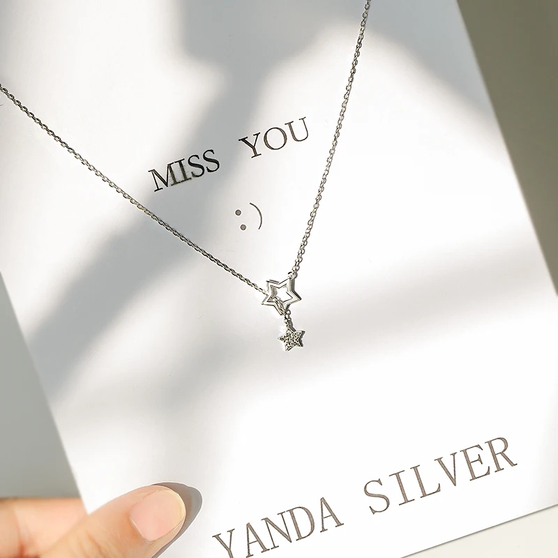 Ожерелье из серебра 925 пробы с блестящими звездами, новинка, прост...