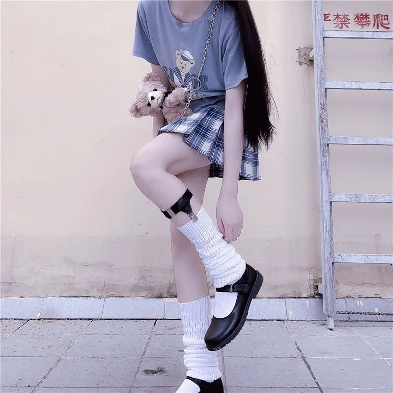 Гольфы, вязаные, однотонные, в японском стиле лолита