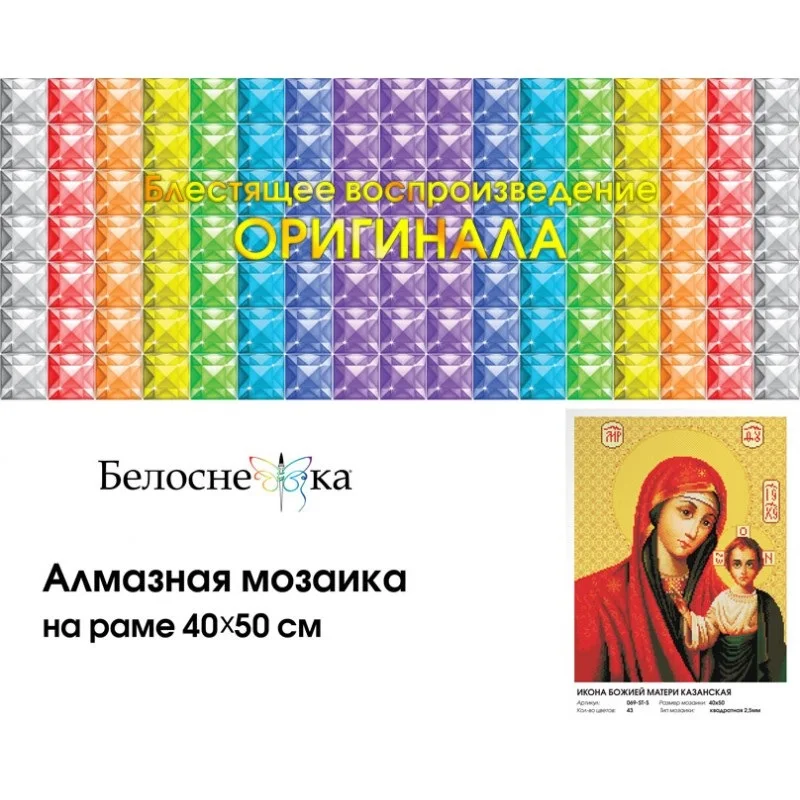 "Икона Божией матери Казанская" Алмазная мозаика на подрамнике 40*50. Белоснежка. 069-ST-S