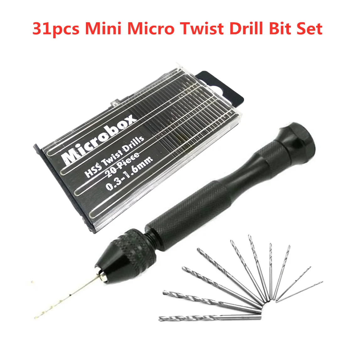 31 шт. Мини Микро алюминиевая ручная дрель с бесключевым патроном HSS спиральное сверло деревообрабатывающие сверлильные вращающиеся инструменты ручное сверло