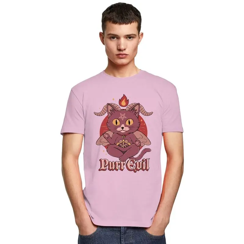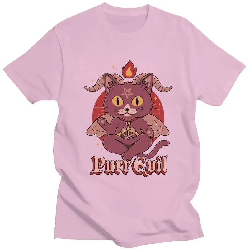 Забавная Мужская футболка Baphomet Purr Evil, хлопковая Футболка Kawaii Lucifer, оккультный козел, футболка с коротким рукавом, новая одежда с графическим рисунком