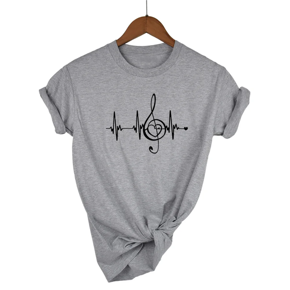 С музыкальными знаками "кардиограмма сердца", женская футболка с принтом женские летние топы на каждый день Harajuku футболки женская футболка женская одежда