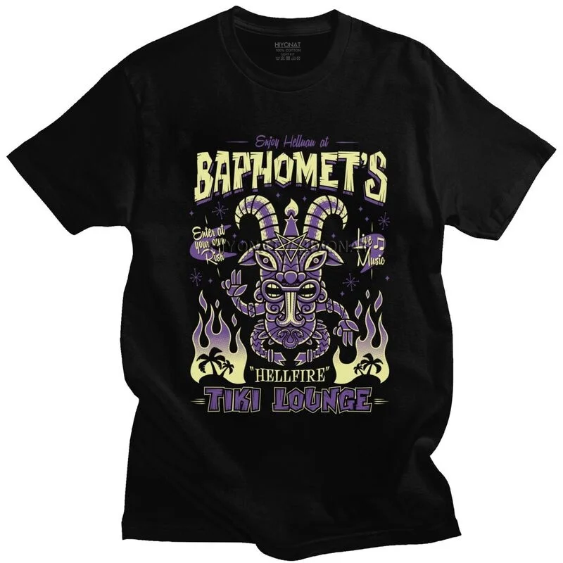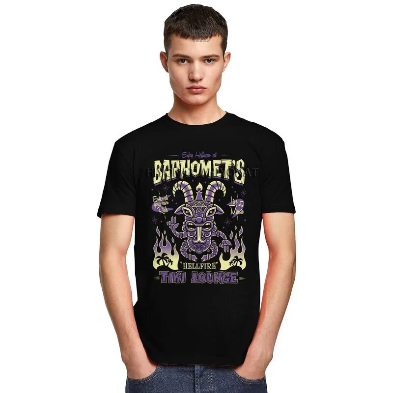 Футболка Baphomet мужская с коротким рукавом, Классическая тенниска из 100% хлопка, майка с рисунком горячих огней и тиков, Топ для занятий серфингом, лето