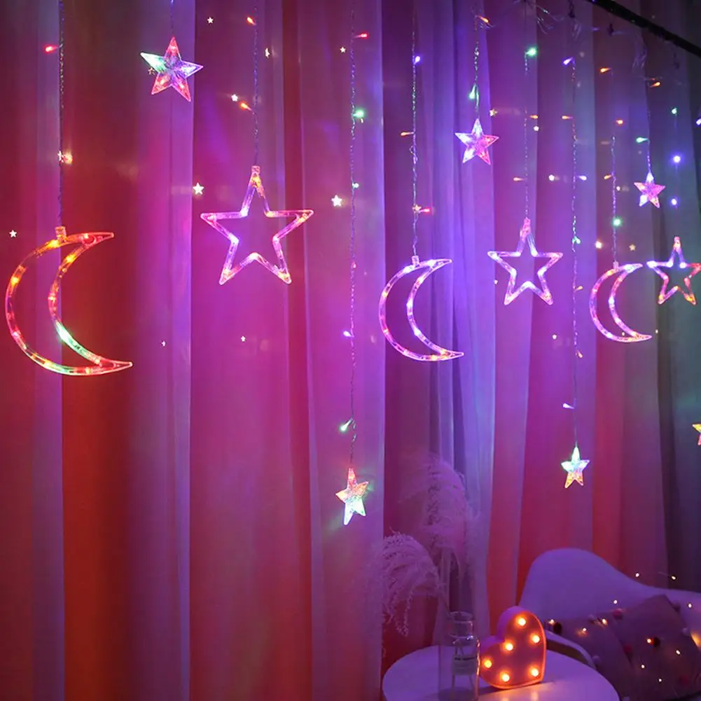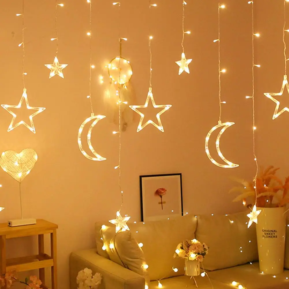 ИД Мубарак Луна, Звезды Рождественская гирлянда светодиодный занаве...