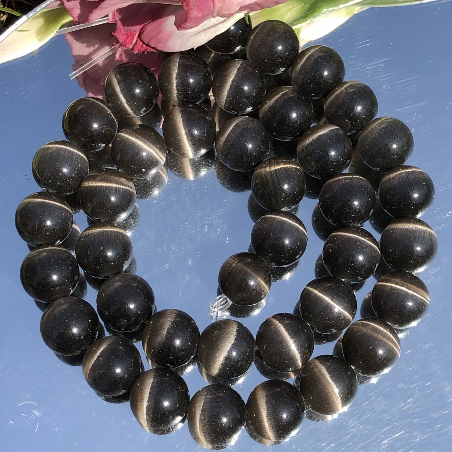 Красивые камни, но они не такие, как на картинке. Белая леска через камни была почти незаметна только тогда, когда вы приблизились к ней, это неверно с камнями в виде кошачьих глаз.