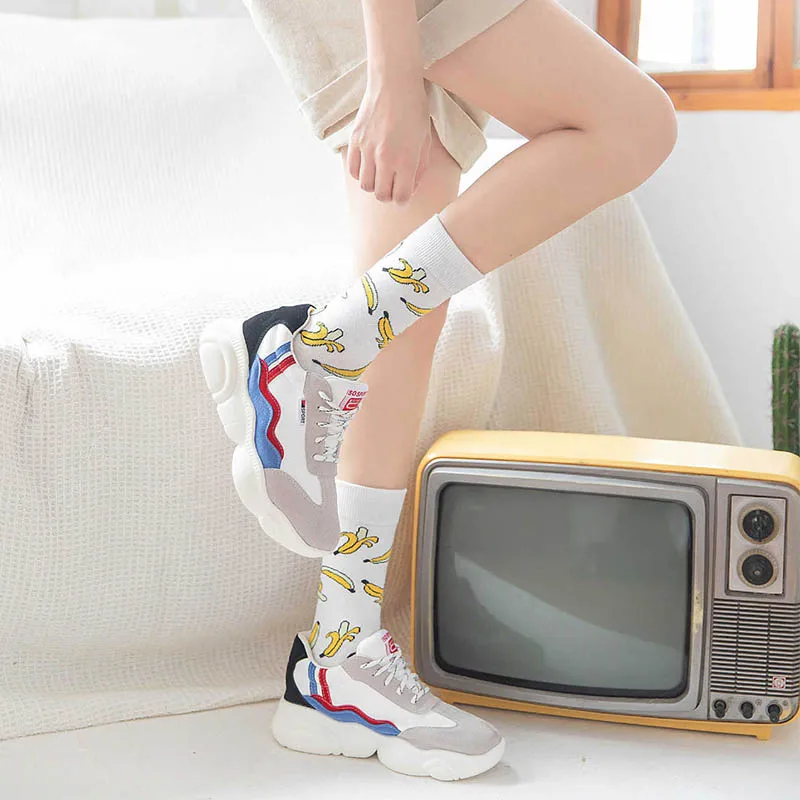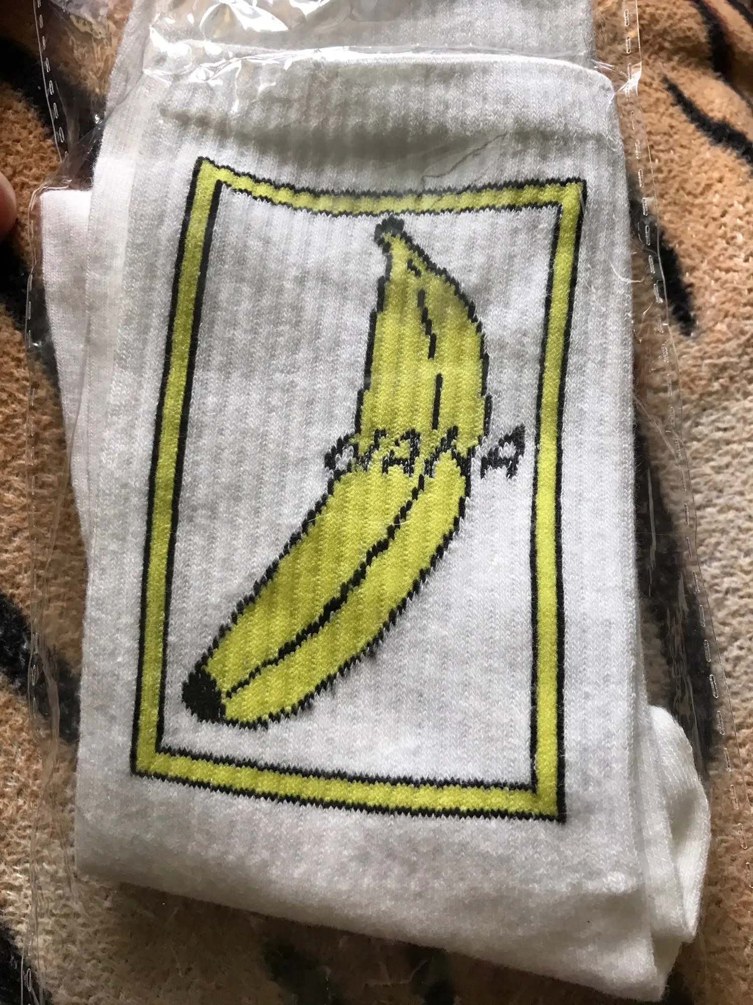 Носки женские, с рисунком банана, клубники, животных, носки с пламенем