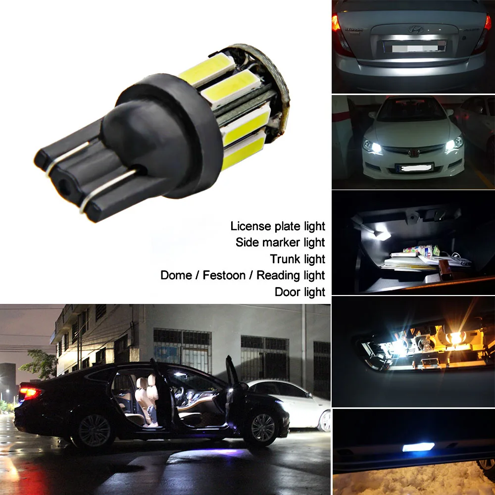 -Каждый светодиодный T10 содержит 6 Красивых высококачественных 7020 SMD светодиодный s (доступны в ксеноновом белом цвете), которые намного ярче и красочнее, чем в наличии OEM желтоватые вольфрамовые лампы.