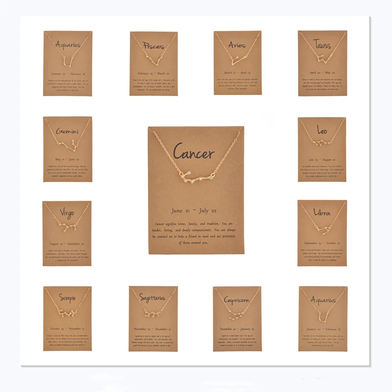 Оптовая продажа, картонные ожерелья с 12 созвездиями, Блестящие кри...