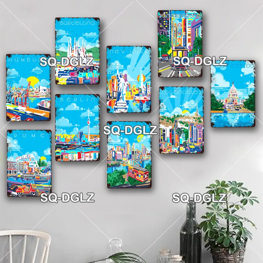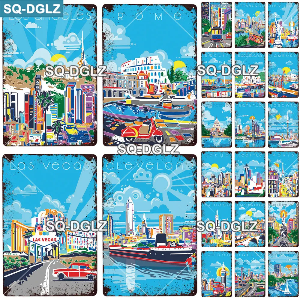 Металлическая вывеска с изображением города Лас-Вегаса, винтажный Декор металлическая табличка для паба, бара, Настенный декор, жестяная вывеска, Постер в Дублине, Риме, Берлине, подарок