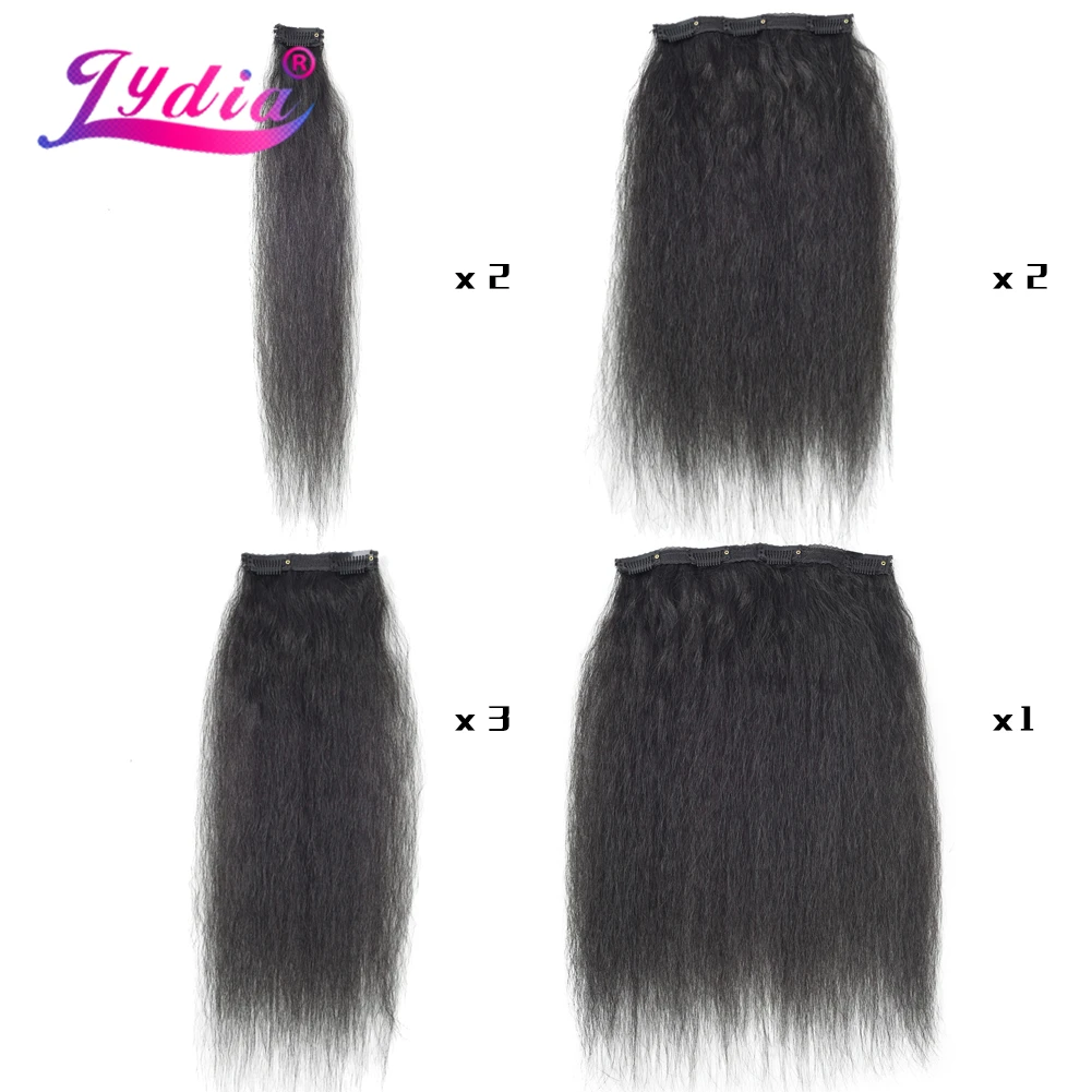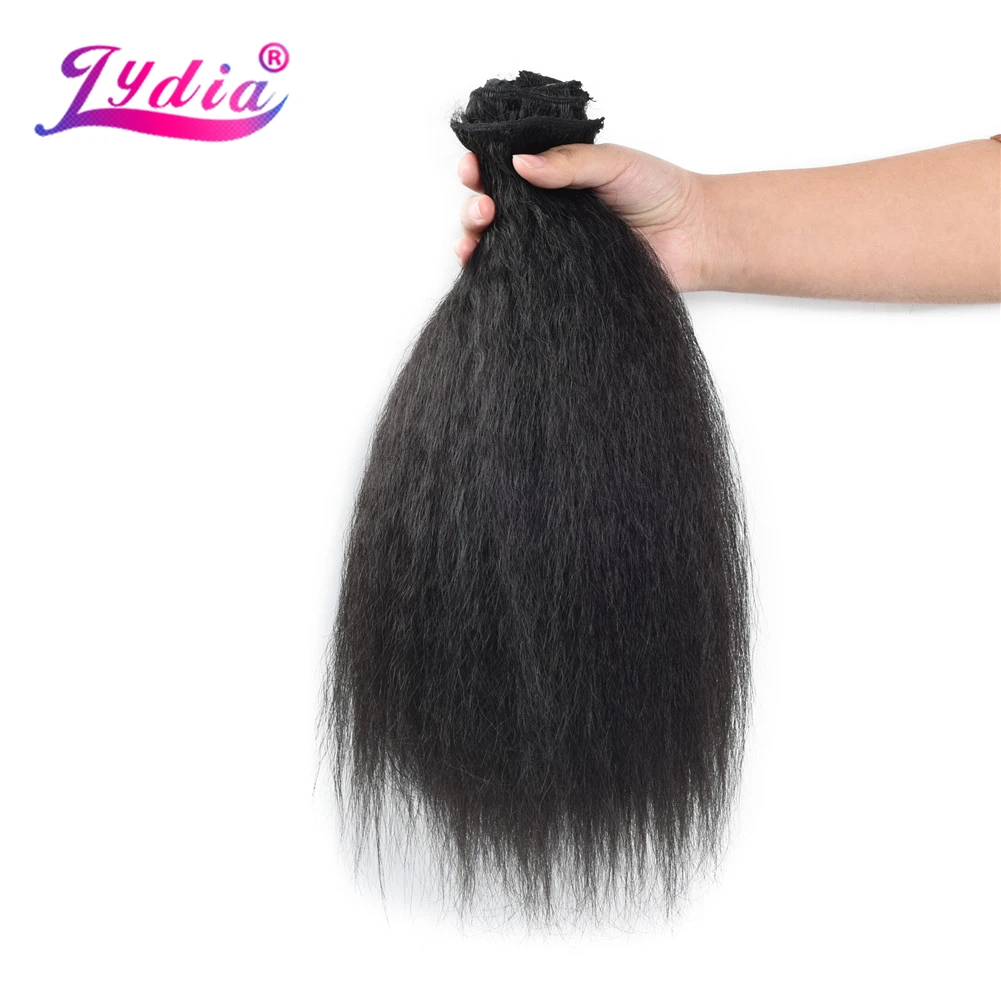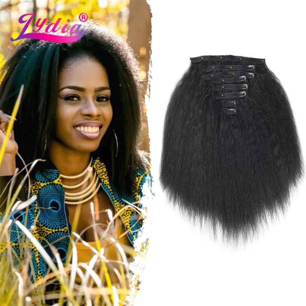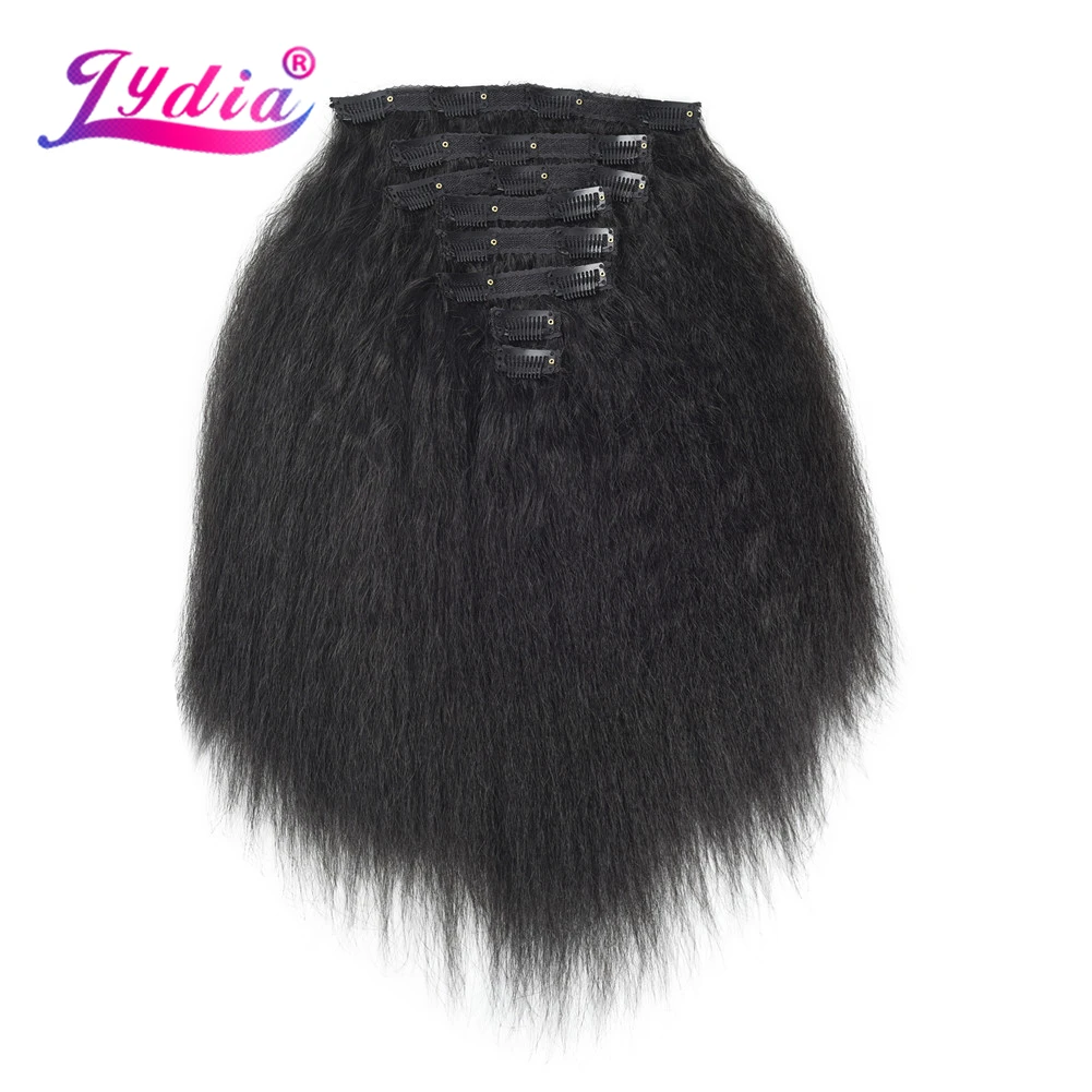 Лидия 8 шт.компл. With18Clips-In из искусственных волос Кудрявые прямые волосы на заколках длинные термостойкие Hair-Pieces16-20 афро американский