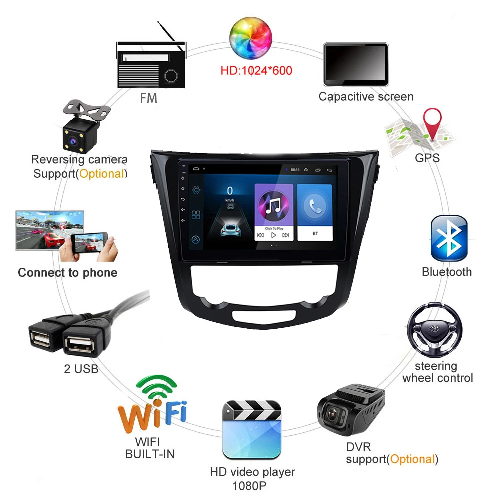 Особенности Подключение смартфона, зеркальная связь, двойное управление Полное управление емкостным сенсорным экраном Встроенный Bluetooth 4,0, громкая связь, телефонная книга ● A2DP Steam music от мобильный телефон до радио 10-дюймовый цифровой HD дисплей 1024*600 ●Система Android 10 ● Встроенная флэш-память 1G/2G DDR3 16G/32G ● Встроенный WiFi Вход для камеры заднего вида Интегрированный усилитель на полевых МОП-транзисторах 4x45 Вт FM интегрирует 18 предварительно настроенных станций ●FM Диапазон частот: 87,5-108 МГц Два задних USB-входа ●Управление рулевым колесом 2-полосный задний видеовход 2 CH после RCA входа 2-канальный задний аудиовыход 1-канальный задний видеовыход Многоязычный: английский, французский, итальянский, испанский, немецкий, русский, китайский и т. д. Материал: металл пластик Место установки: Консольный автомобиль Подходит для марок автомобилей: Nissan X-TRAIL Предустановленная карта: онлайн-карта Google Тип экрана: цифровой сенсорный экран Размер экрана: HD 2.5D 9 дюймов Разрешение экрана: 1024x600 Чип процессора: MTK8227/ Cortex-A7 Основная Частота процессора: 1,23 ГГц * 4 Вспышка (Внутренняя память): 16G/32G Формат носителя: AVI ASF MKV. .. FLV. .. RMVB. .. WMV RM MP3. .. MOV MPEG. .. ВОБ Язык экранного меню: английский, русский, немецкий, французский, итальянский, испанский, арабский, иврит, японский, чешский, португальский, румынский, турецкий, корейский и другие 60 языков. И т. д. Вход: DC 14,4 V. Этот продукт не имеет функции dvd. Посылка входит: 1 задняя камера (дополнительно) 1 x кабели для задней камеры 2 x USB-кабеля 1 Антенна GPS 1 кабель RCA 1 шнур питания 1 x Руководство пользователя