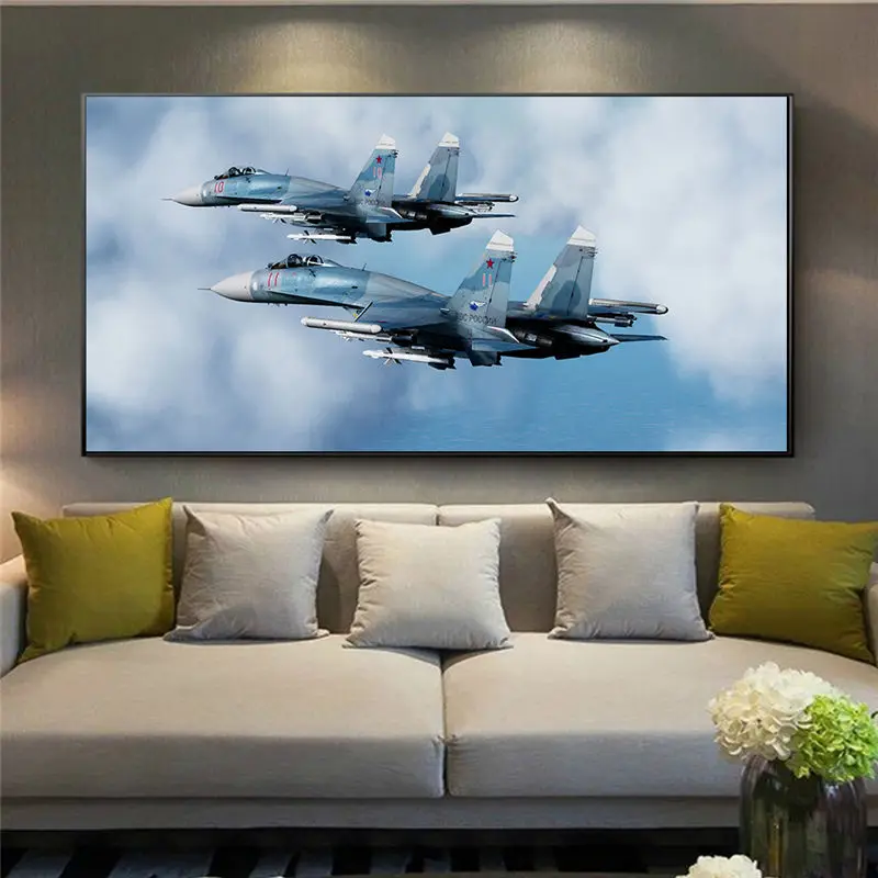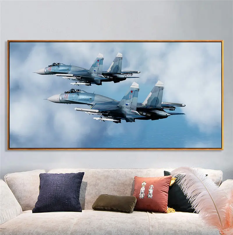 Конструкция истребителя в стиле ретро, рисунки на холсте, роспись, ...