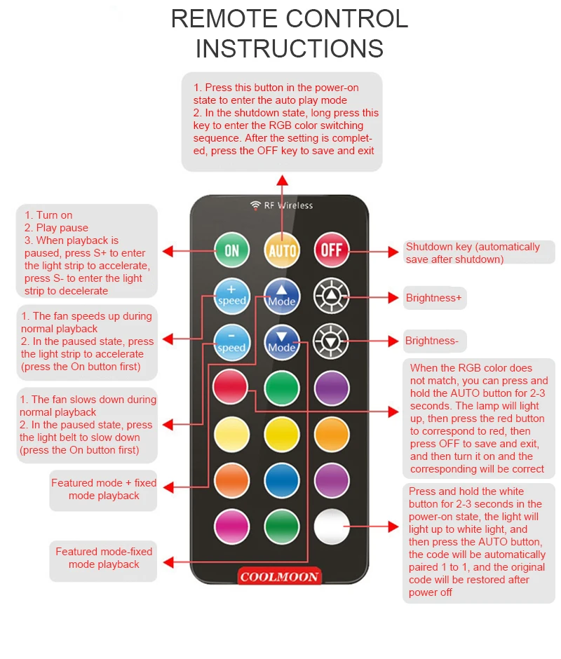 Примечание: 1. Контроллер не поддерживает синхронизацию музыкального датчика и материнской платы Shenguang! ТОЛЬКО пульт дистанционного управления