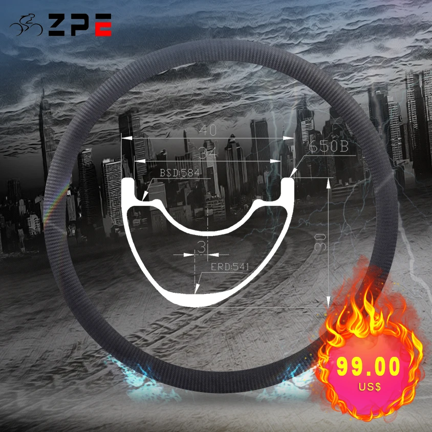 MTB диск обод велосипеда 30x40 мм ассиметричные карбоновые Mtb диски 27,5 er Hookless горный велосипед бескамерный карбоновый обод 24H 28H 32H