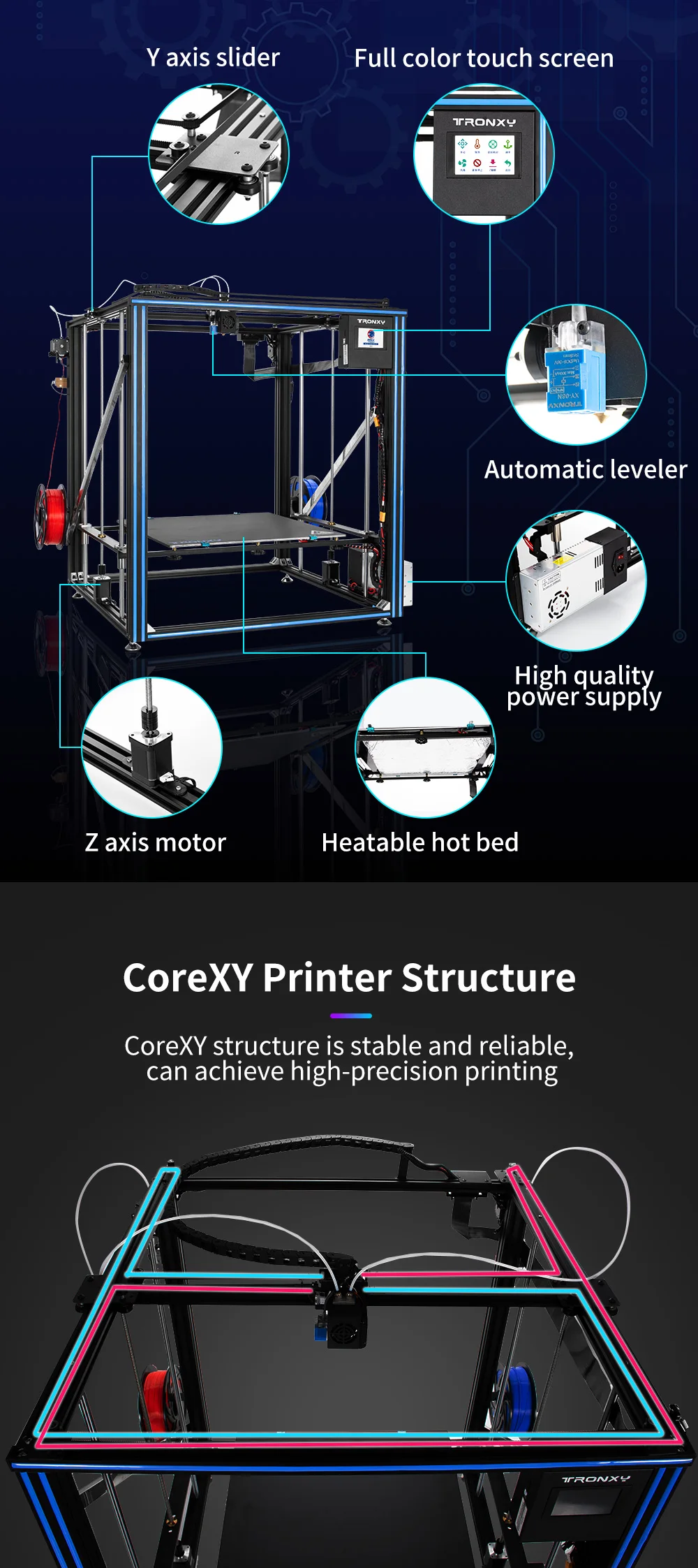 3D-принтер Tronxy X5SA 500 2E, 2 дюйма, 1 выход, полностью металлическая рама, сенсорный экран