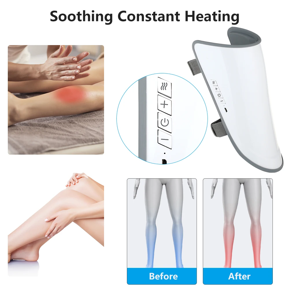 Особенности1. Прост в использовании, просто Наденьте на икру и активируйте его с помощью контроллера, нажав кнопки управления, свободно переключать режимы массажа и регулировать уровни интенсивности в качестве собственного комфорта, И приготовьтесь наслаждаться им либо сидя на стуле, либо лежа на диване.2. Обеспечивает успокаивающий постоянный нагрев и EMS массаж для расслабления мышечного напряжения, способствует циркуляции крови и борьбы с жиром, который эффективно подтянет мышцы, сформирует красивые ножки и снимет боль и усталость ваших ног.3. Один размер подходит всем, застежки на крючках и петлях могут обеспечить широкую совместимость с пользовательской ноской, быстро носить и отпускать.4. Встроенный перезаряжаемый аккумулятор емкостью 1000 мАч может питаться от USB-зарядки для беспроводного применения, не запутывается, чтобы наслаждаться непрерывным массажем дома, в офисе и даже во время путешествий.