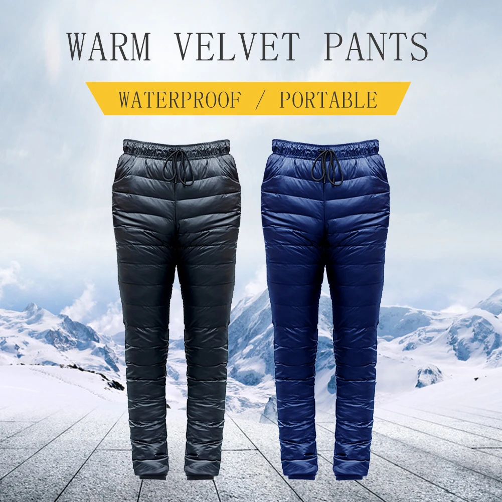 Уличные походные ветрозащитные пуховые брюки на шнурке для катания на лыжах, походов, утолщенные зимние теплые узкие брюки с карманами для мужчин, размер S-5XL