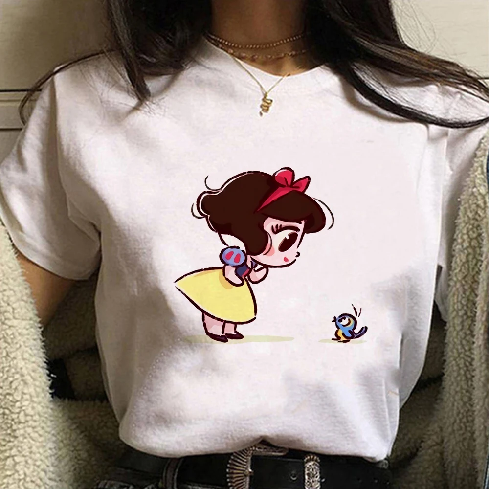 Женская эстетичная футболка в стиле Харадзюку, женская одежда с коротким рукавом и принтом Белоснежки и птиц, модная одежда для девочек в стиле Диснея