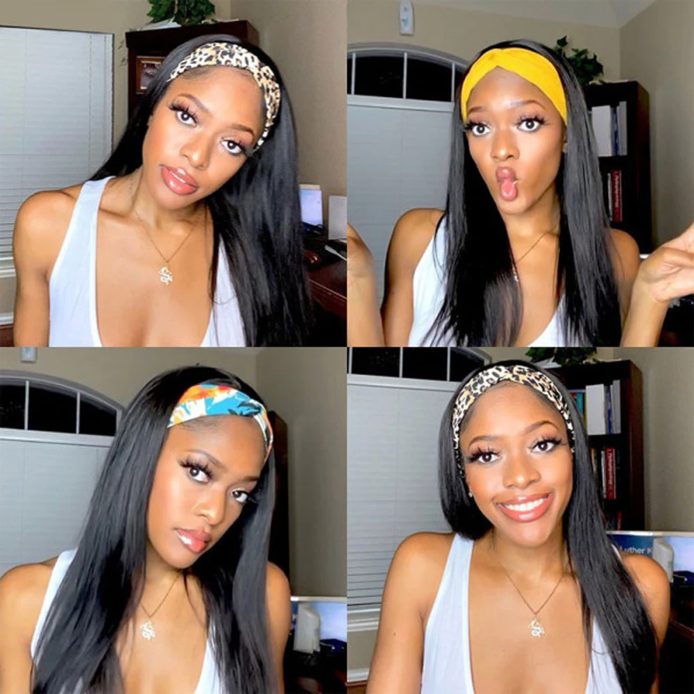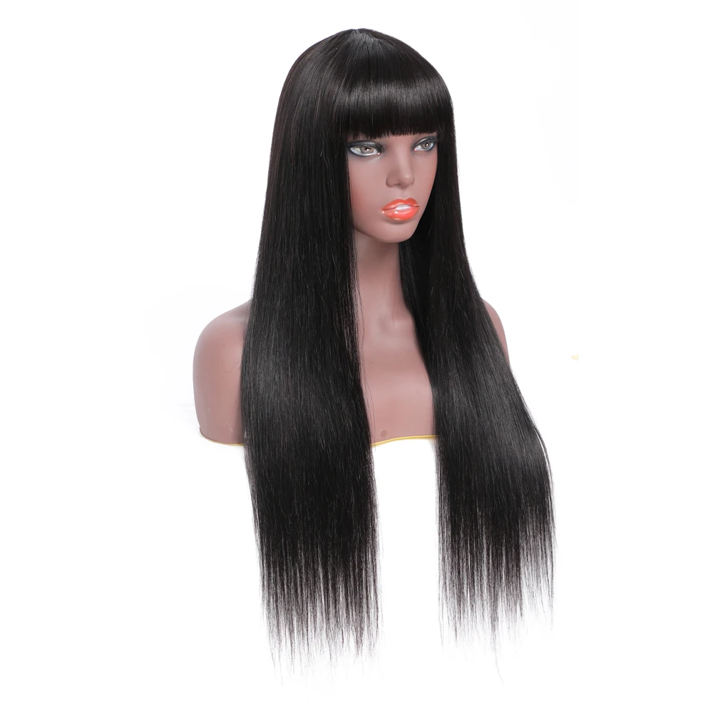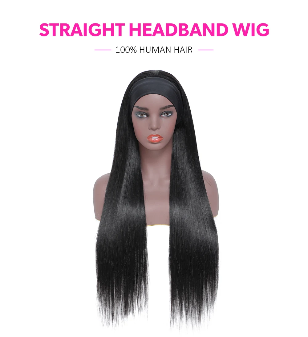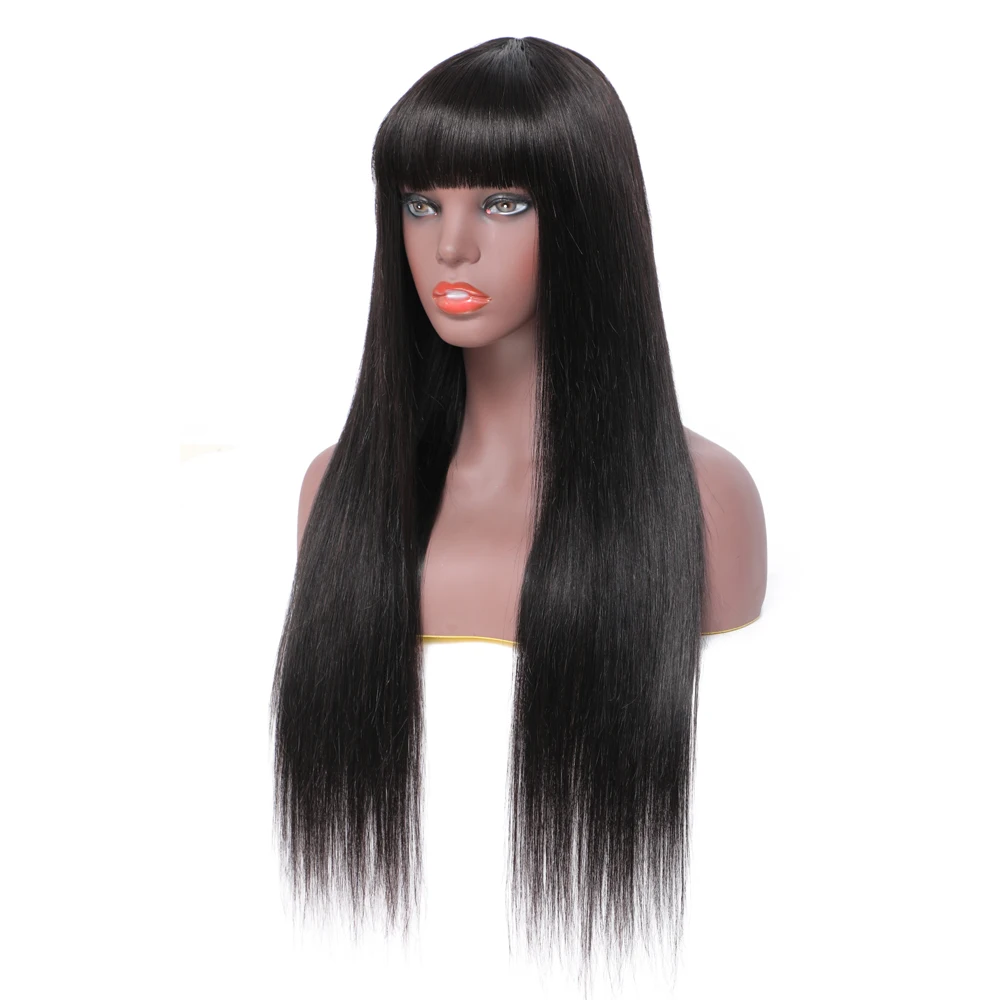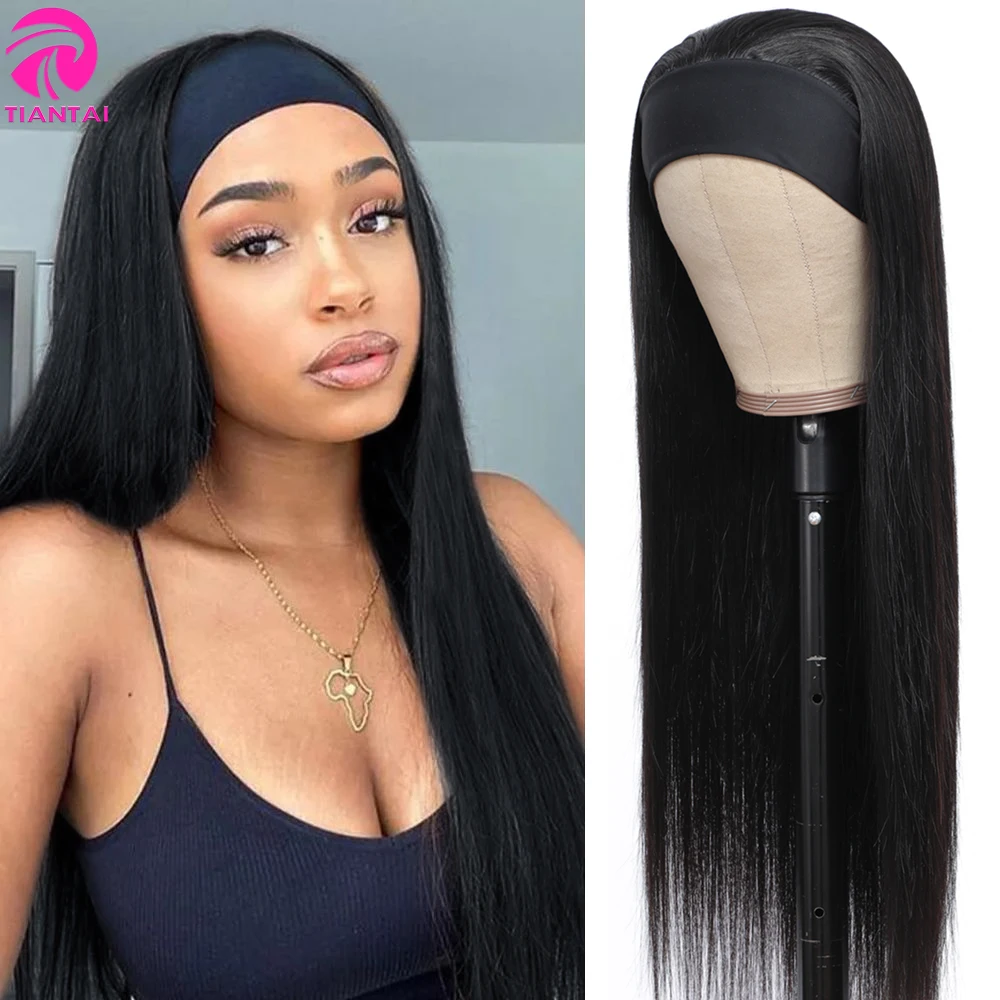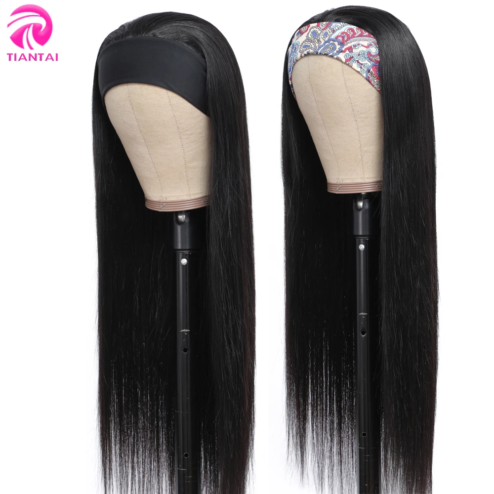 TIANTAI прямой парик с головной повязкой человеческие волосы для афро-американских Для женщин человеческих волос парики с челкой Бразильские волосы парик человеческих волос манекен для шарфа парика