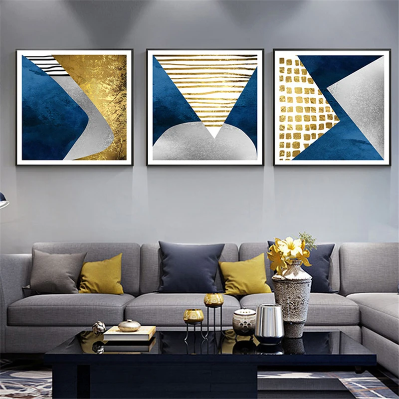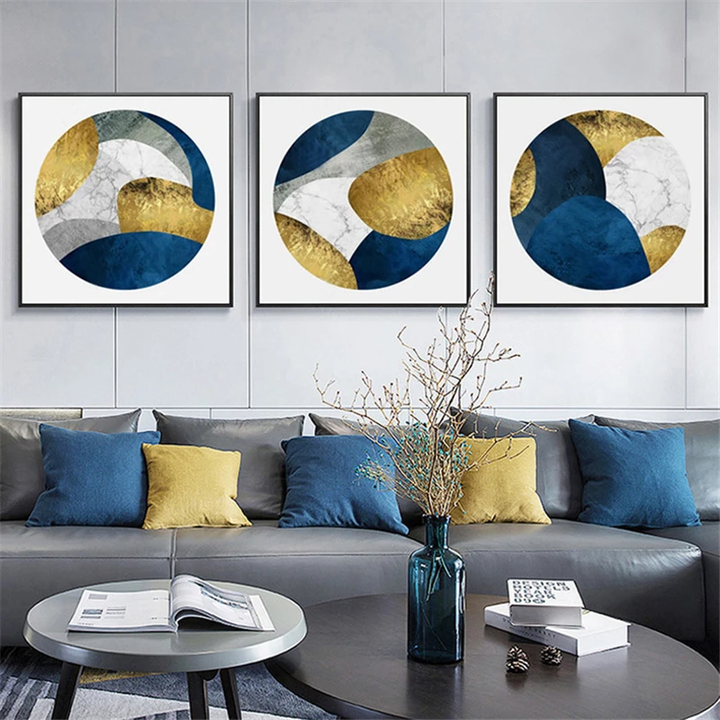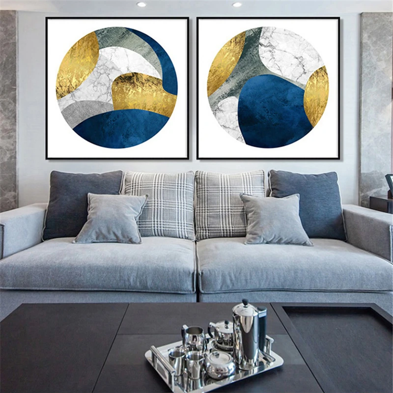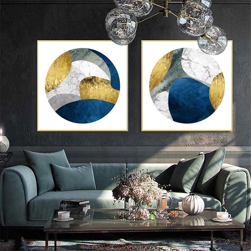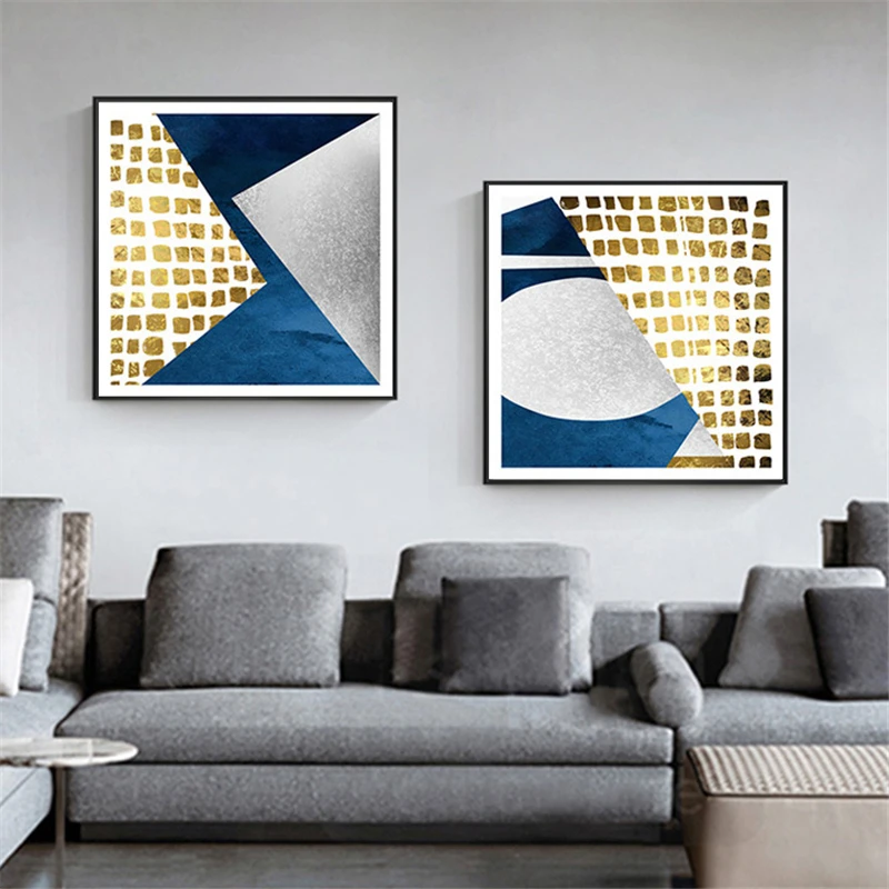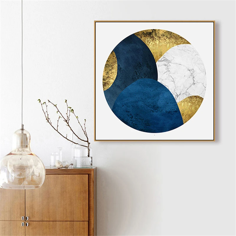 Геометрический абстрактный пейзаж Луны синий серый блок квадратная текстура холст живопись каллиграфия Настенная картина печать плакат Декор