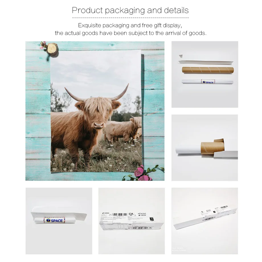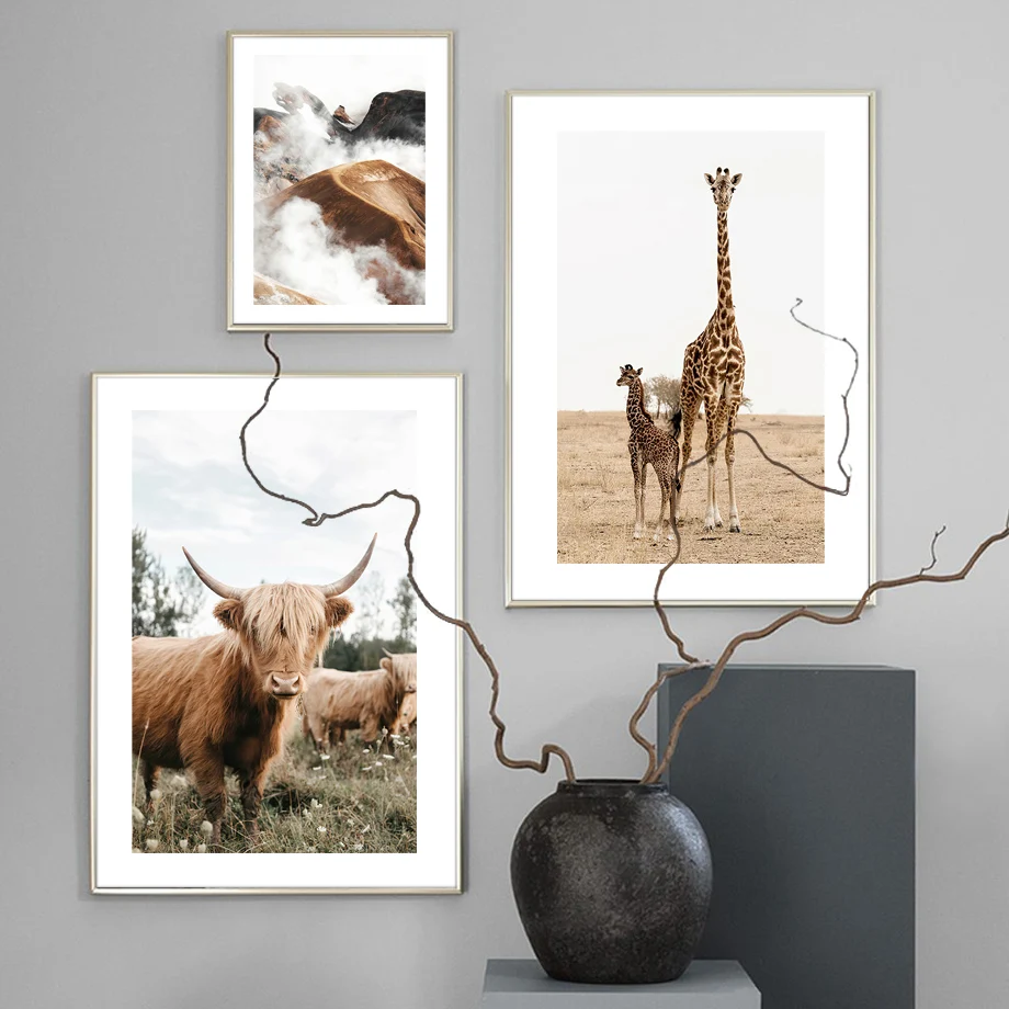 Жираф Хайленд Крупный рогатый скот горный водопад пальмовый лист скандинавский плакат настенный художественный Принт Холст Живопись Декор картинки для гостиной