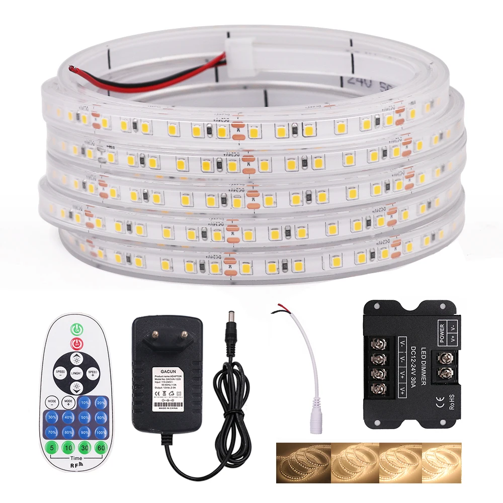 2835 120 светодиодный Светодиодный светильник в полоску 24 в 12 В с регулируемой яркостью RF пульт дистанционного управления гибкий белый светодиодный водонепроницаемый домашний декор