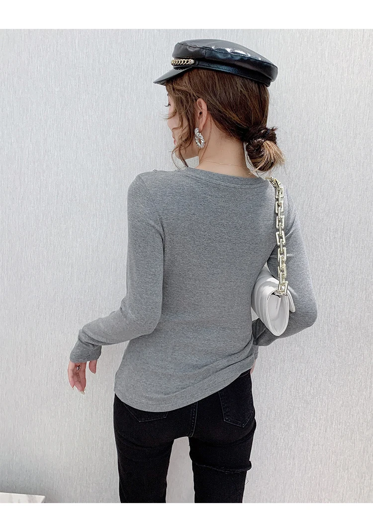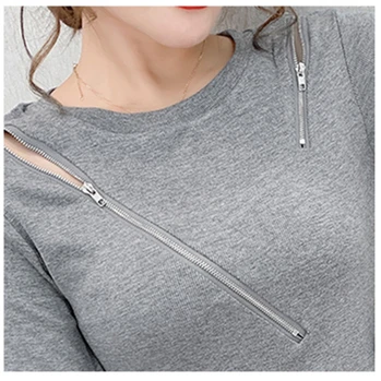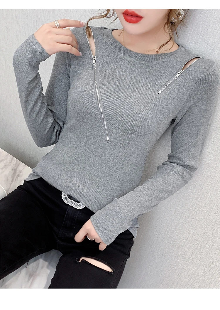 Весенне-осенняя хлопковая футболка в Корейском стиле модные сексуальные женские топы на молнии с открытыми плечами с длинными рукавами, тонкие футболки 2021 T12803A