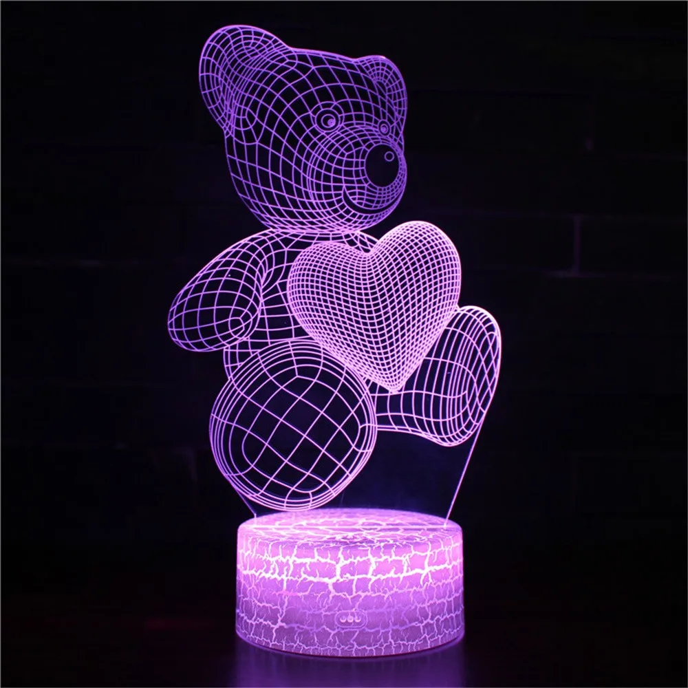 Подарок девушке, спальни, серия любовь, медведь, 3d ночник, красочный сенсорный пульт дистанционного управления, милый уникальный