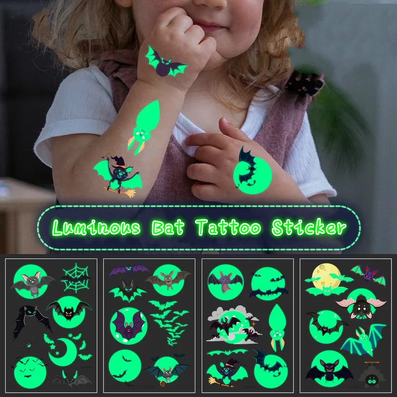 Светящиеся тату-наклейки s на Хэллоуин, светящиеся летучие мыши, та...