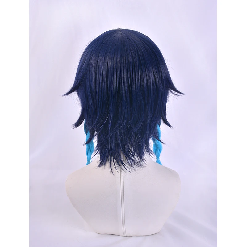 Genshin влияние Венти Градиент Синий короткий Плетеный Косплей Жаростойкие синтетические волосы Хэллоуин Карнавал вечерние + бесплатная крышка парика