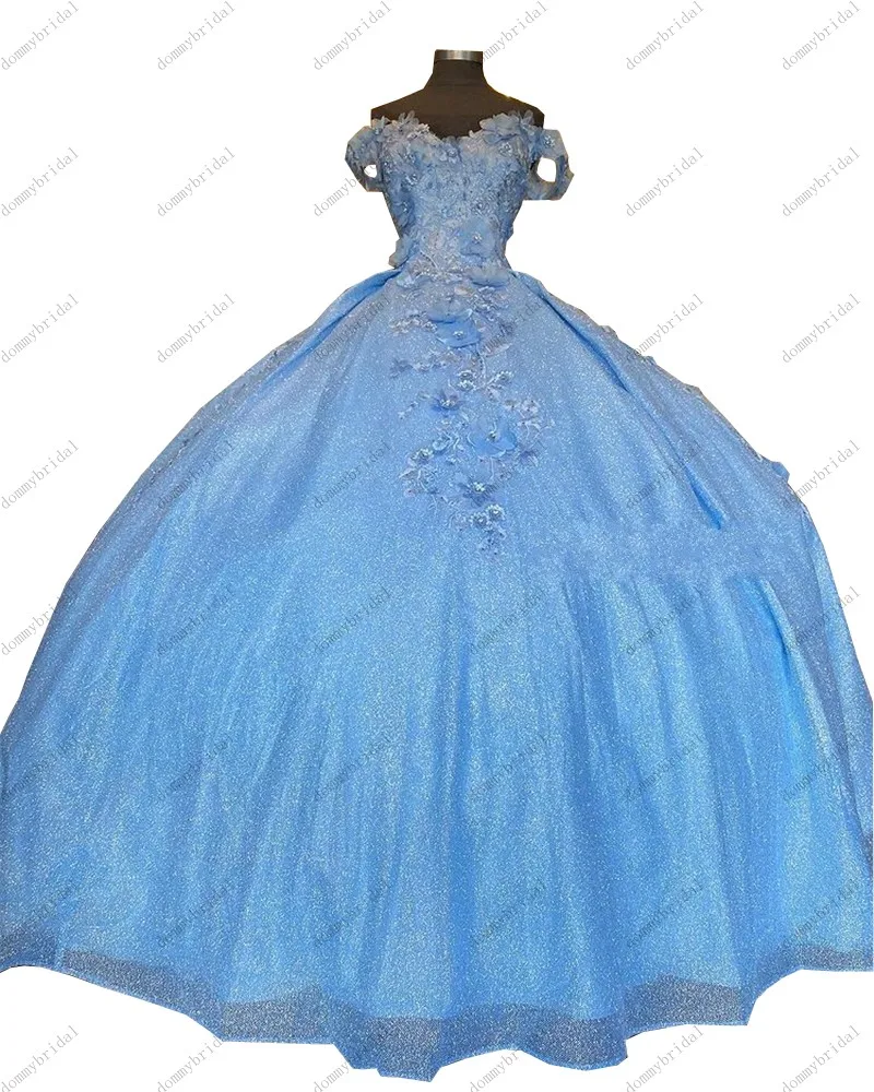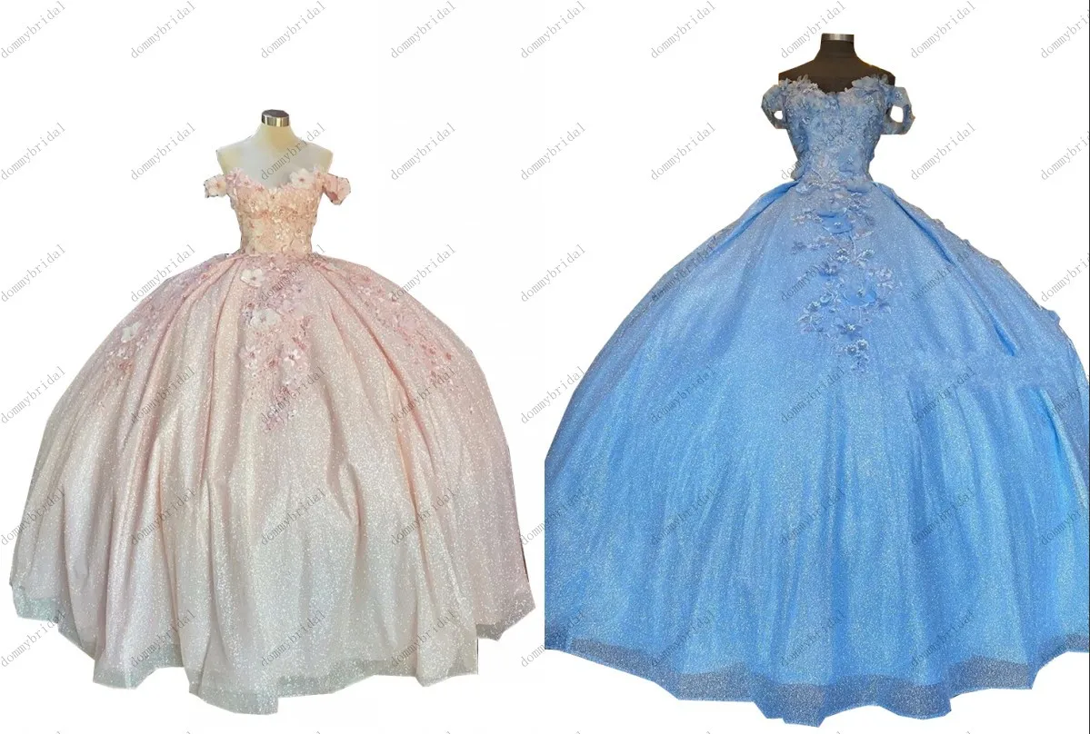 2022, платья 15 лет, мексиканское бальное платье с 3D цветами и шарро, платья для Quinceanera XV, милые 16 румян, голубые Блестящие Блестки